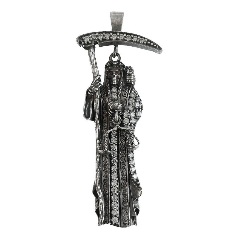 Dije Medalla Grande Santa Muerte Zirconias Plata 925 7.7 Cm - Negro