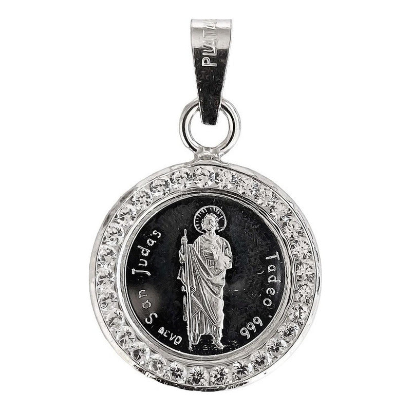 Dije San Judas Grande Zirconias Plata Ley 925 6.2 Cm Verde Alto/ancho 6.2 Cm X 2 Cm