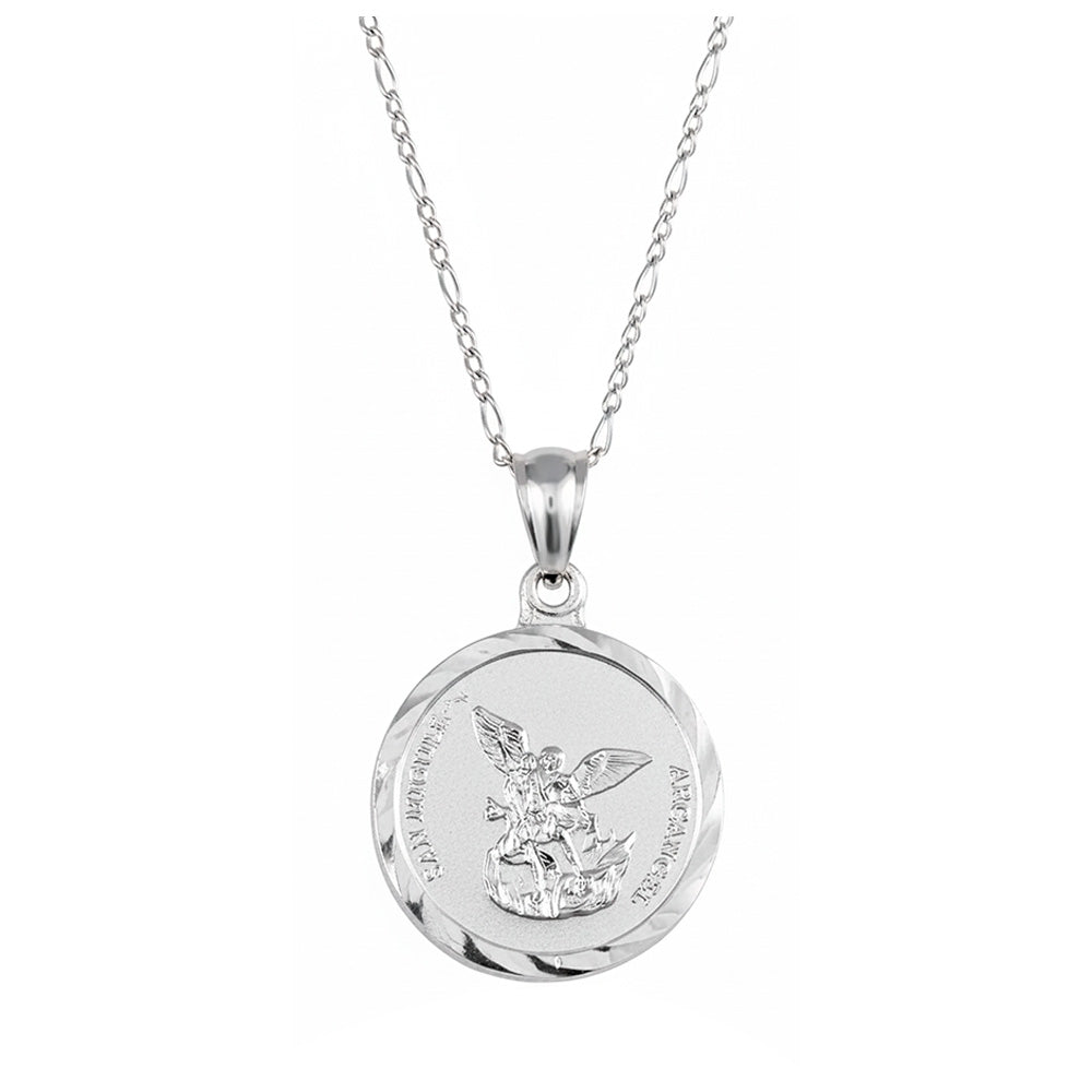 Collar San Miguel Arcangel Diamantado Mediano Plata Ley 925