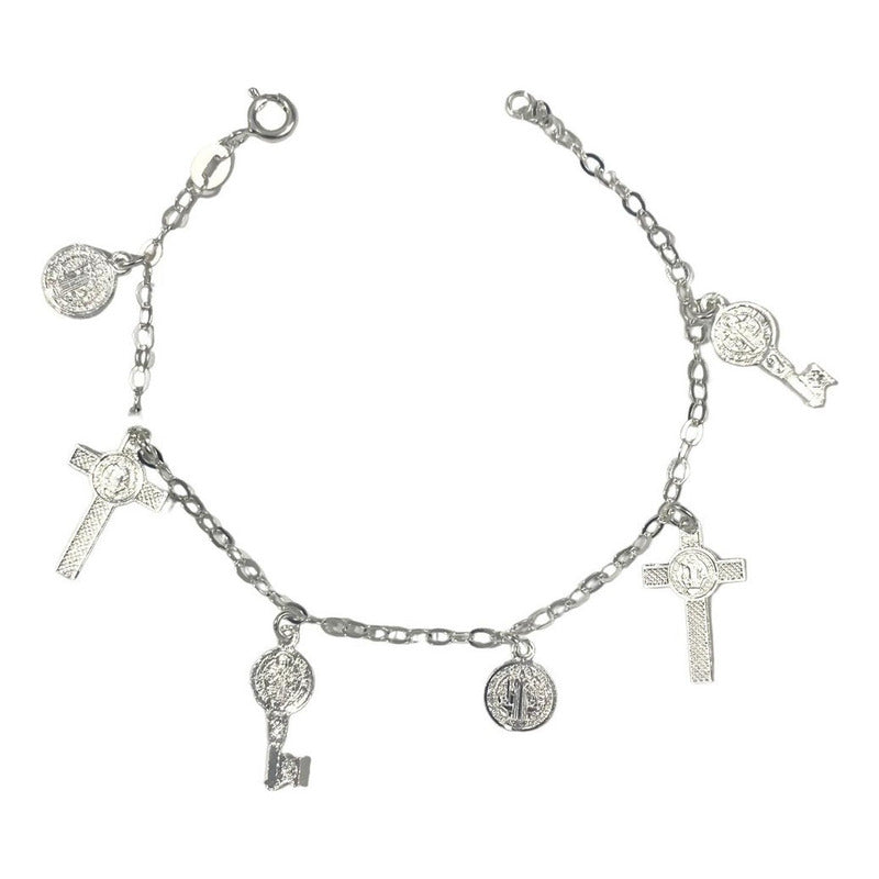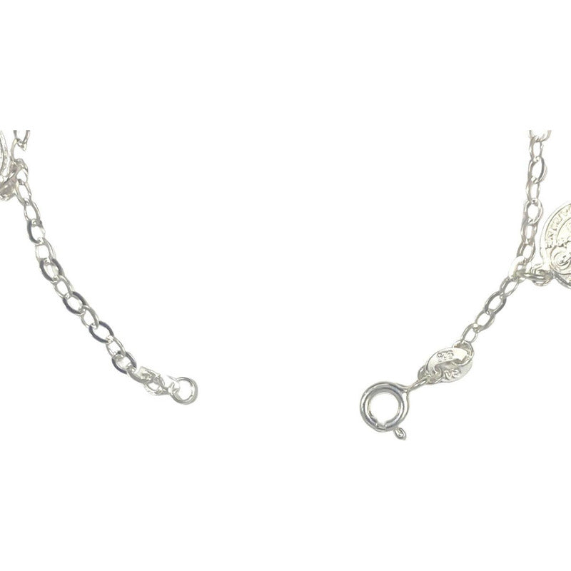 Pulsera Ajustable San Benito Pequeña Medallas Plata Ley 925