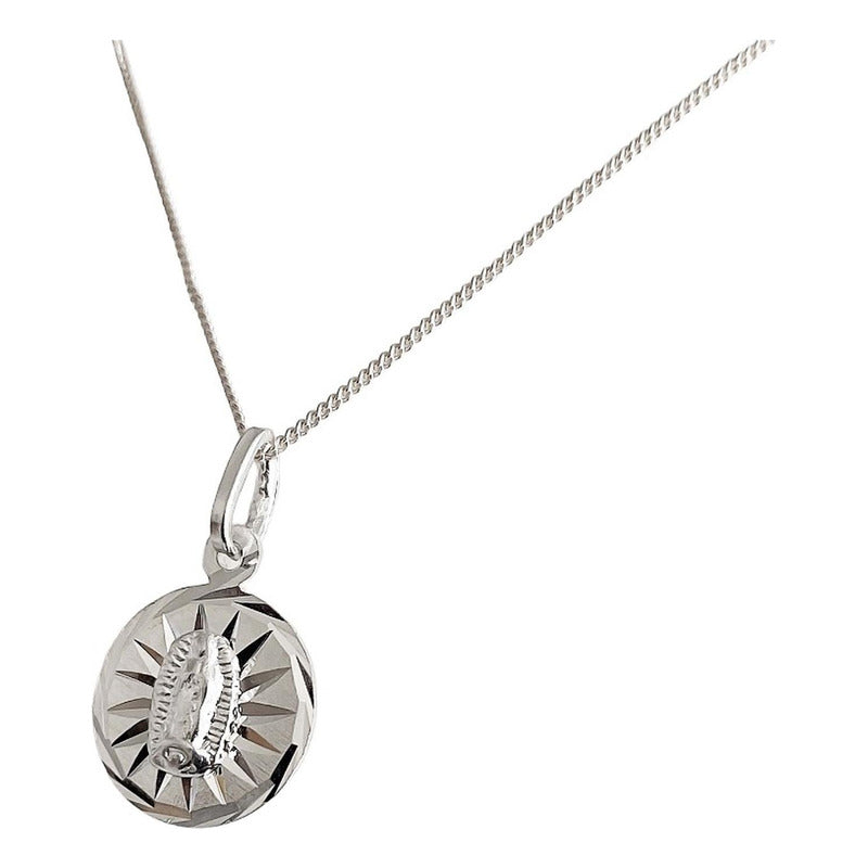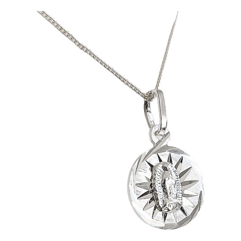 Collar Medalla Diamantada Virgen Guadalupe Plata Ley 925 52053