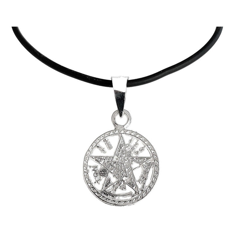 Collar Caucho Dije Medalla Tetragramaton Diamantado Plata925 Blanco