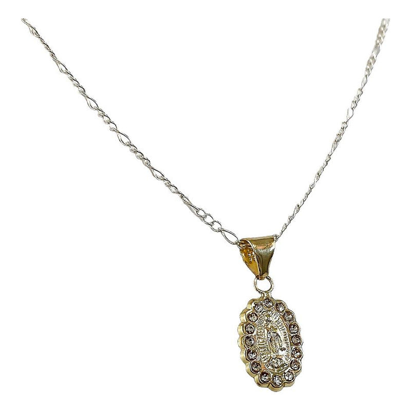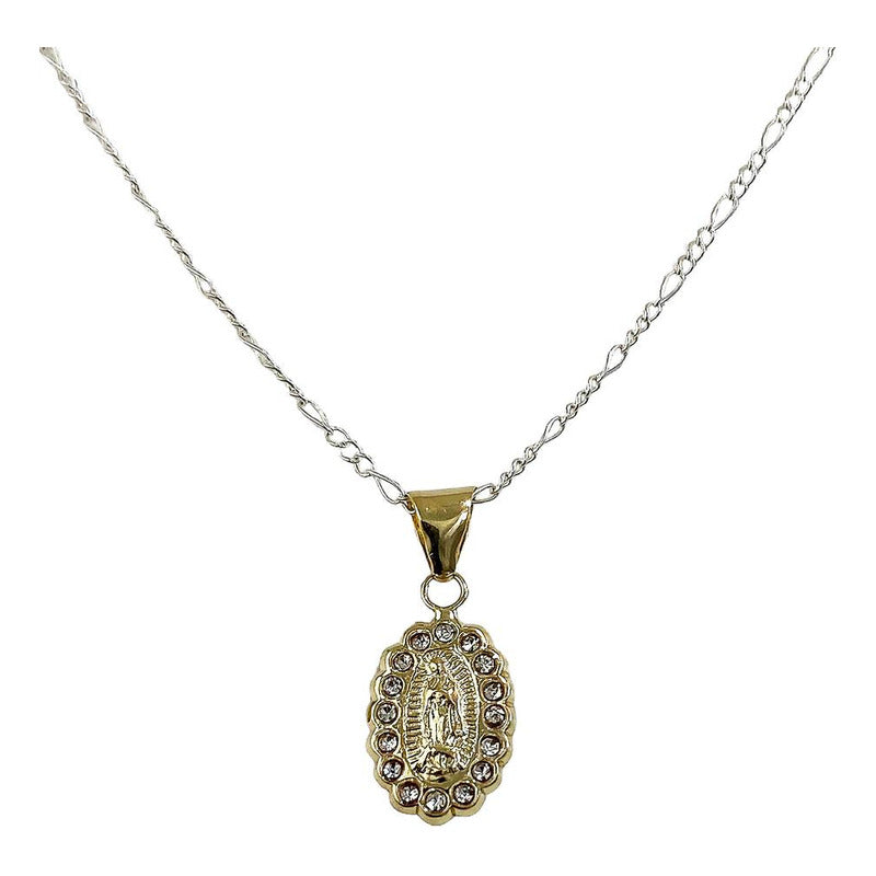 Dije Virgen Guadalupe Zirconias Hueco Oro10k +cadena Regalo Dorado Alto/ancho 2 Cm X 0.8 Cm