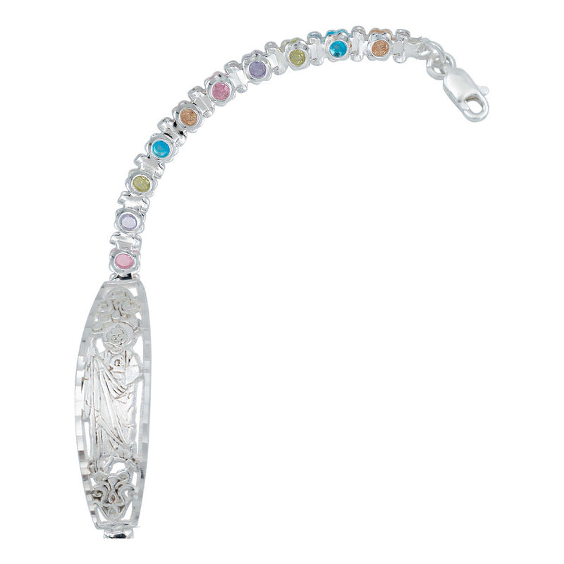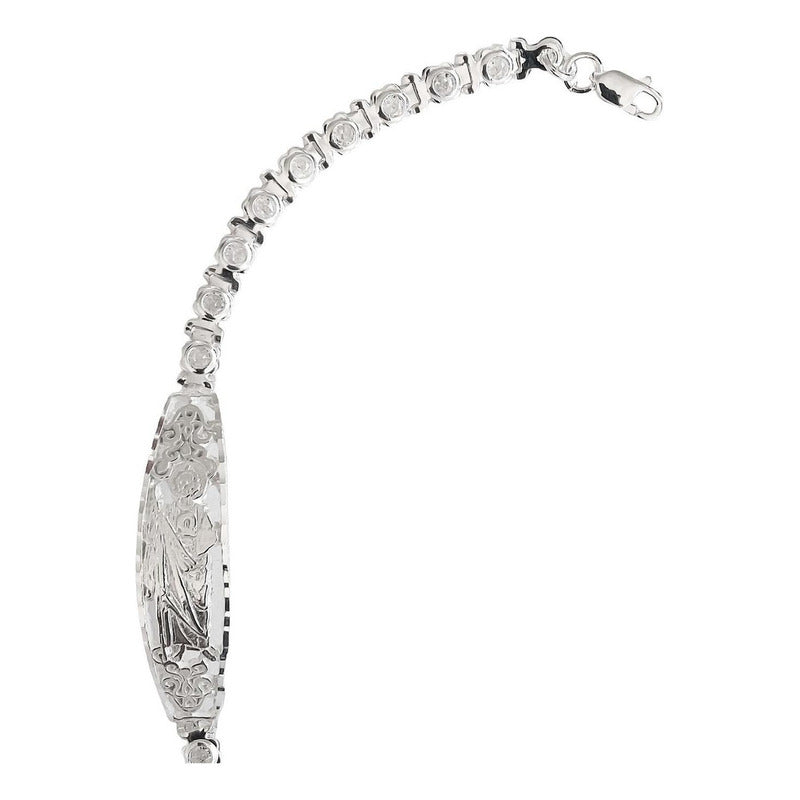 Pulsera Ajustable Dama Placa San Judas Grabado Plata Ley 925