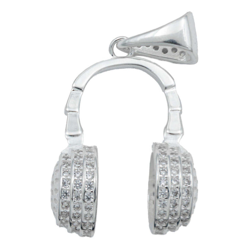 Dije Audifonos Auriculares Gamer Plata Zirconias Plata 925 Plateado Alto/ancho 4 Cm X 2 Cm