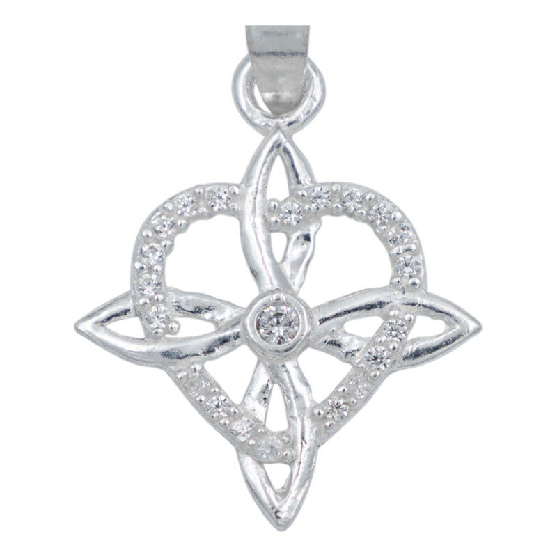 Dije Nudo De Bruja Corazón Zirconias Con Cadena Plata 925 Blanco