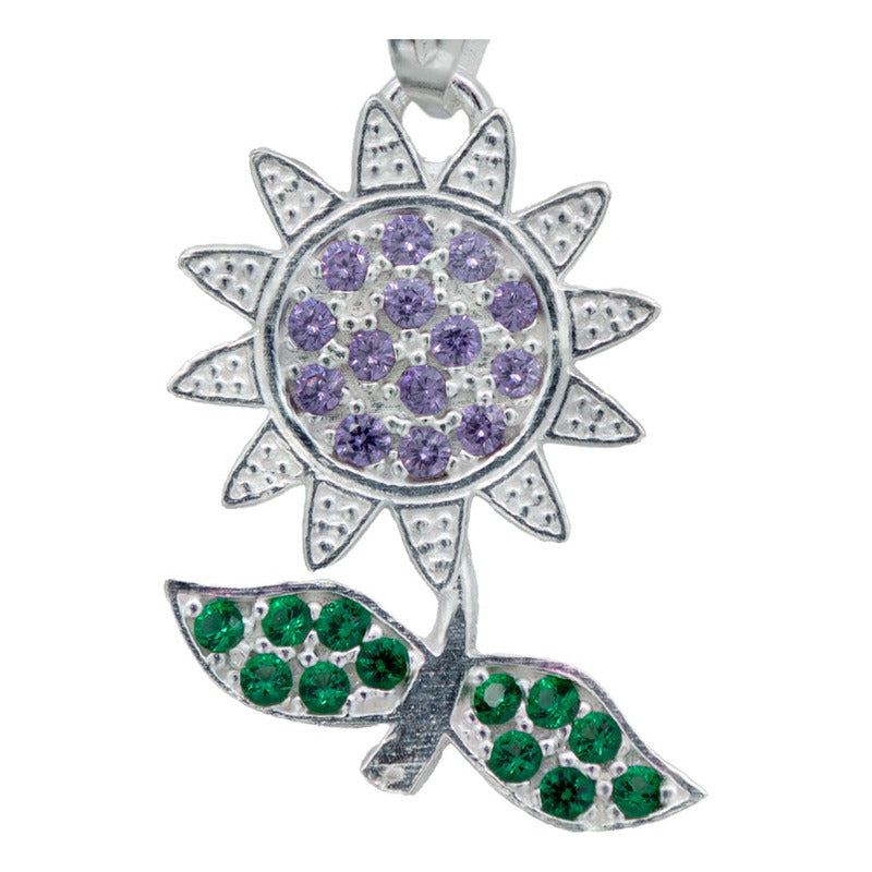 Dije Flor Primavera Zirconia Mujer Amor Regalo Plata 925