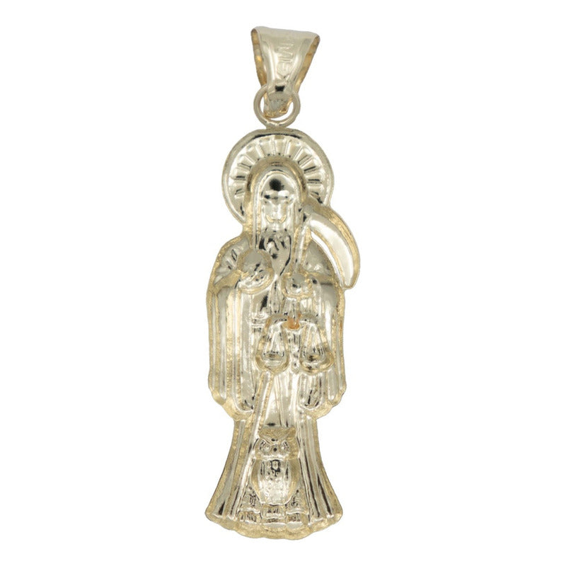 Dije Santa Muerte Grande Lisa Oro 10k + Cadena Plata Regalo Dorado