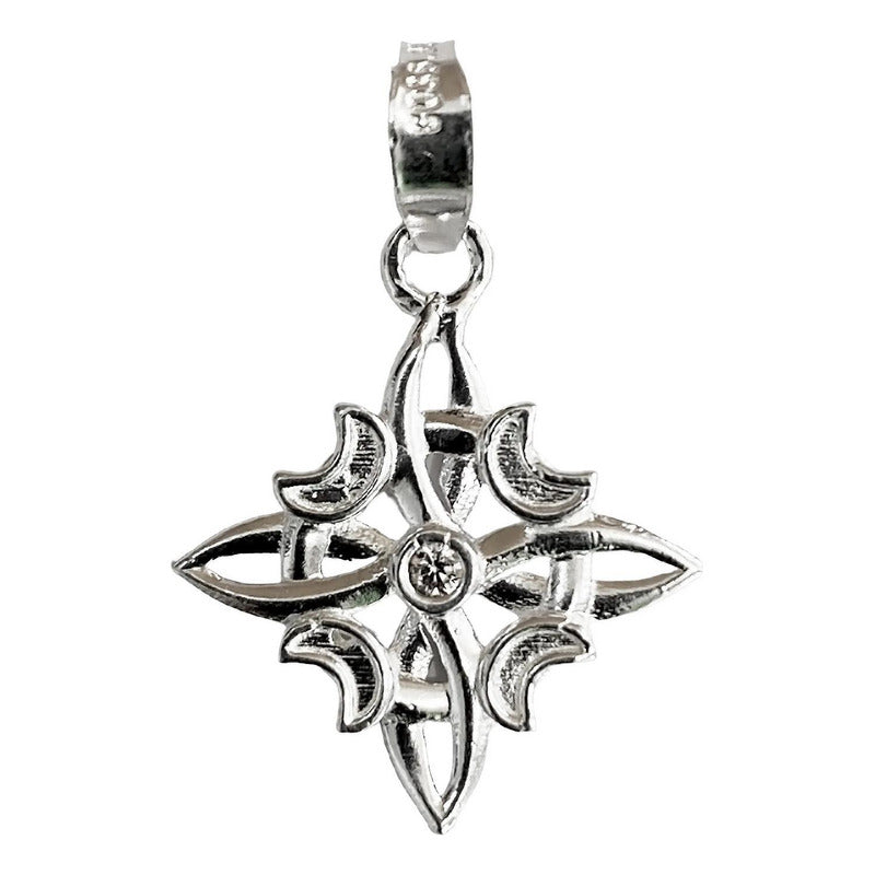 Dije Nudo De Bruja Fases Lunares Zirconia Plata Pura Ley 925 Blanco