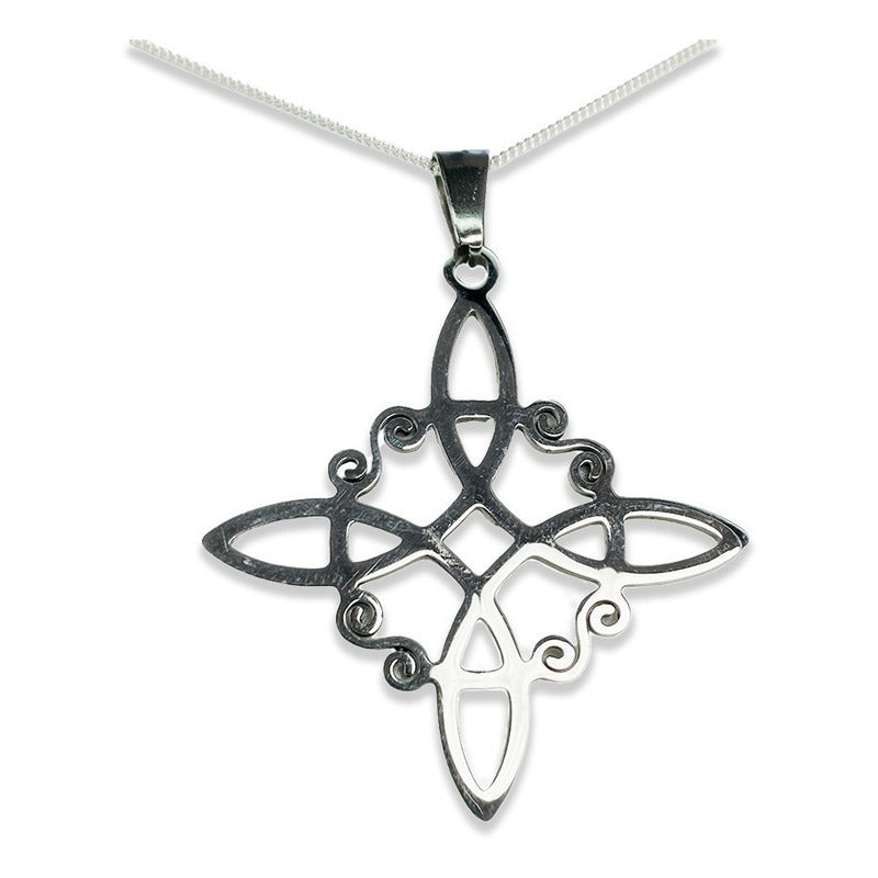 Dije Nudo De Bruja Celta Acero Inoxidable + Cadena Plateada