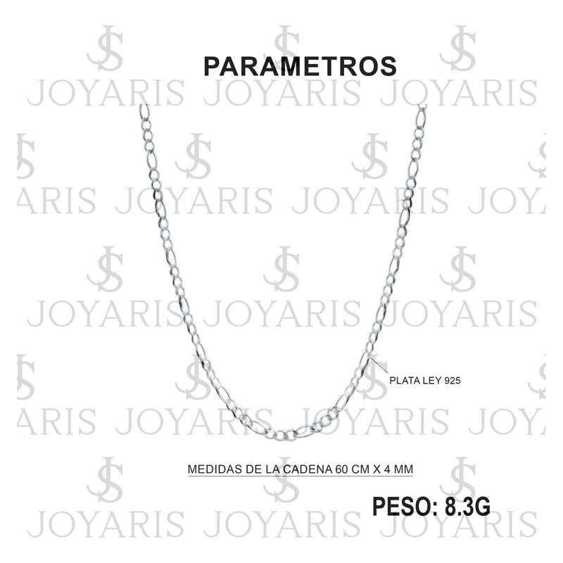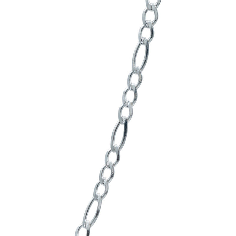 Cadena Figaro 3x1 Diamantada Unisex Plata S925 60 Cm X 4 Mm Plateado