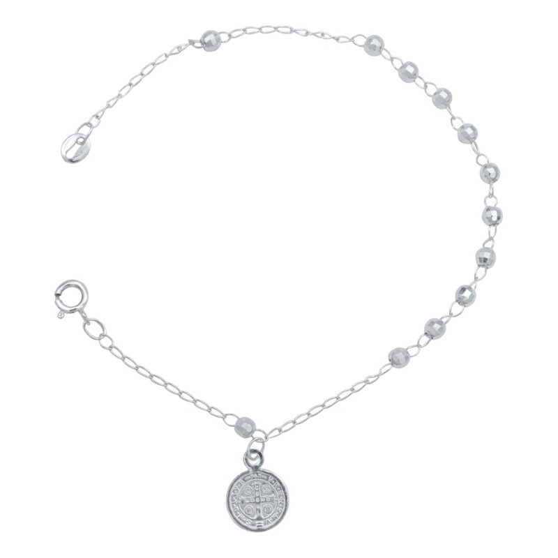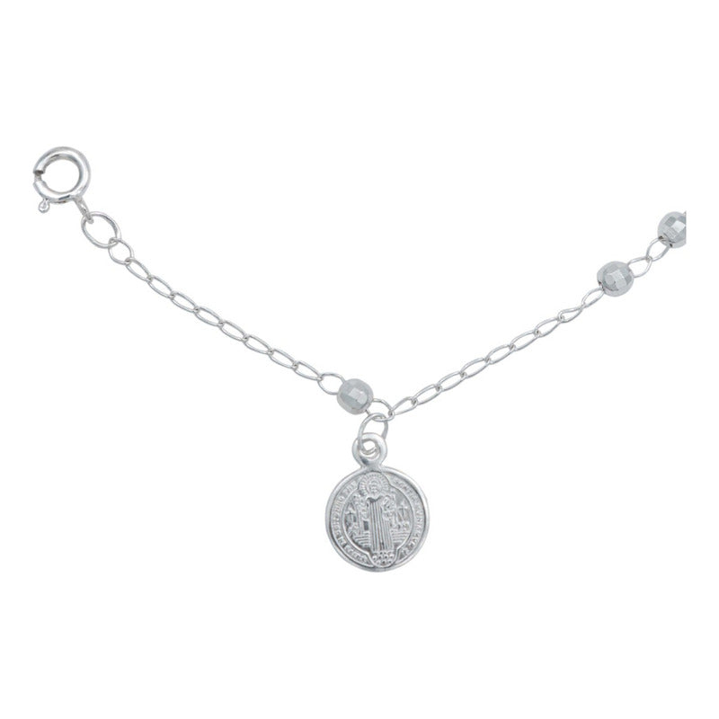 Pulsera Misterio Facetada San Benito Bolas 3 Mm Plata S925 Plateado 6 Cm 18 Cm