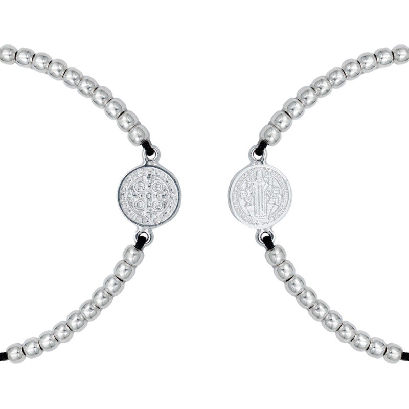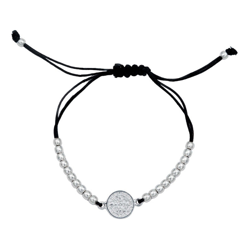 Pulsera Ajustable San Benito Hilo Artesanal Bola Plata 925
