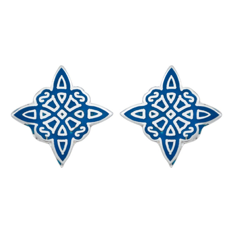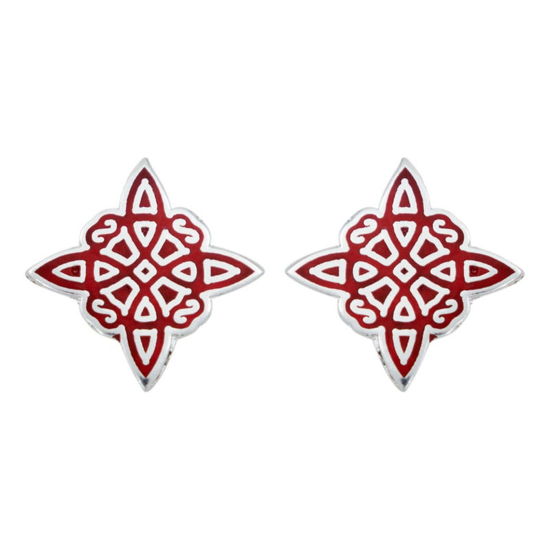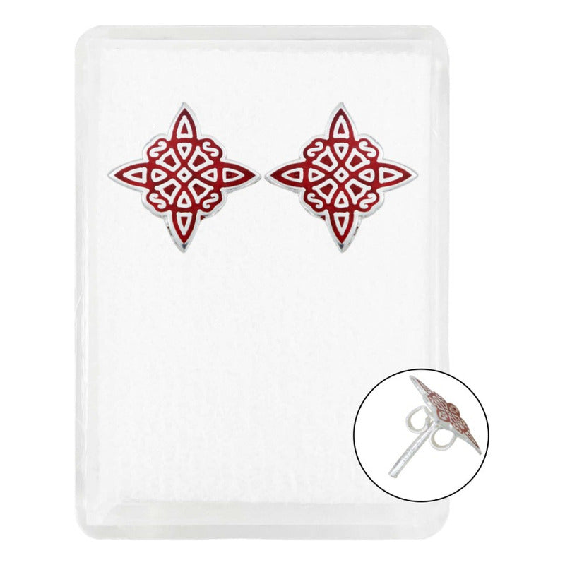 Arete Broquel Nudo De Bruja Laser Esmaltado Plata 925