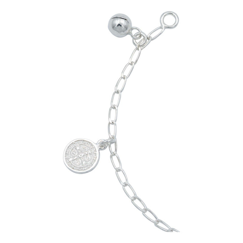 Pulsera San Benito Medalla Doble Vista Cascabel Plata 925