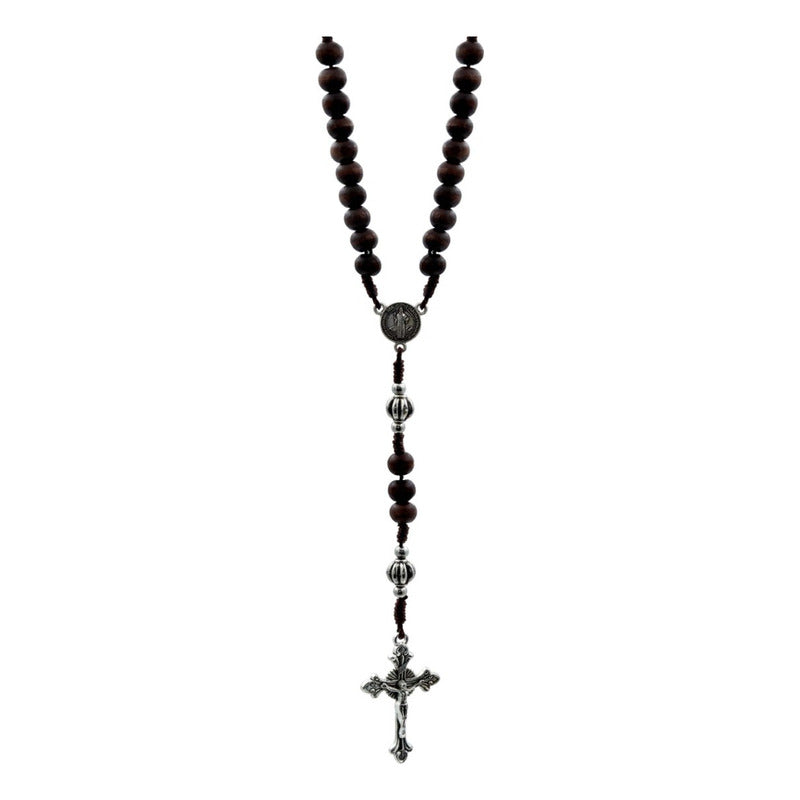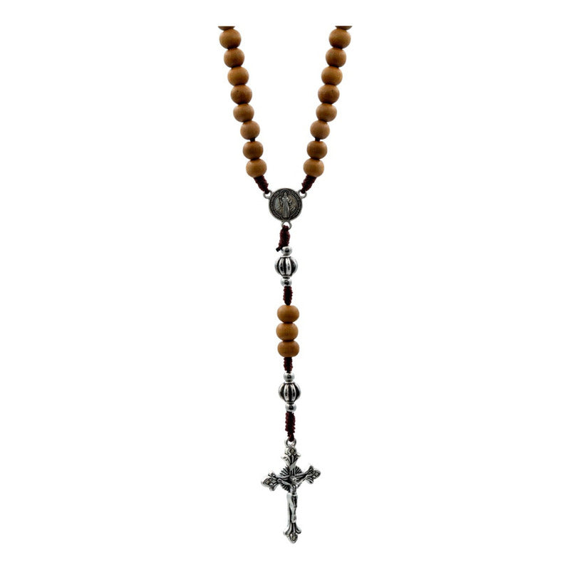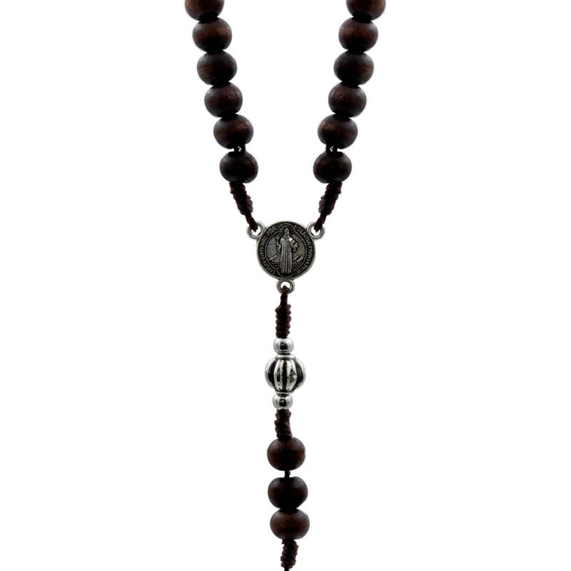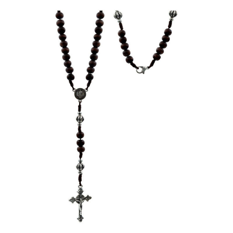 Rosario Católico Madera Con Metal San Benito Cristo Virgen