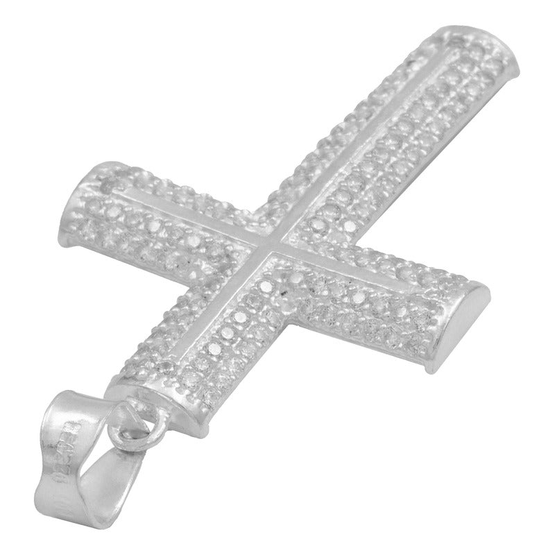 Dije Cruz Elevada Zirconias Hombre Regalo Plata 925 4.6 Cm Plateado