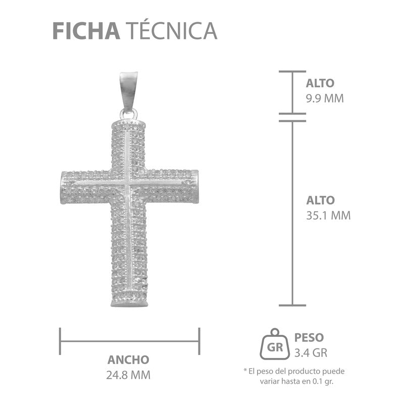 Dije Cruz Elevada con Zirconias para Hombre en Plata Ley 925: Estilo y Significado en una Joya Impactante El Dije Cruz Elevada con Zirconias para Hombre en Plata Ley .925 es una pieza diseñada para destacar. Con un diseño robusto y elegante, esta cruz combina la fuerza del simbolismo religioso con el brillo de las zirconias, creando un accesorio moderno y significativo, ideal para hombres que buscan un estilo sofisticado y lleno de carácter. ¿Qué incluye mi compra? Dije/Medalla: Diseño: Cruz elevada con zirconias incrustadas que aportan un brillo espectacular, destacando los detalles del diseño tridimensional. Dimensiones: 4.6 cm de alto x 2.5 cm de ancho, un tamaño imponente que captura miradas sin perder la elegancia. Material de Alta Calidad: Plata Ley .925: Fabricada con 92.5% de plata pura y 7.5% de aleación de metales, este dije garantiza resistencia, durabilidad y un acabado brillante que permanece impecable con el tiempo. Zirconias: Las piedras cuidadosamente colocadas ofrecen un brillo similar al de los diamantes, añadiendo un toque de lujo a la pieza. Características Destacadas: Diseño Masculino y Elegante: La cruz elevada con zirconias combina fuerza y sofisticación, perfecta para hombres que desean un accesorio distintivo. Simbolismo Espiritual: La cruz es un emblema universal de fe y protección, lo que convierte a esta pieza en un amuleto personal cargado de significado. Versatilidad de Uso: Ideal para ocasiones especiales o para agregar un toque elegante al estilo diario. Se puede combinar fácilmente con cadenas de distintos estilos. Regalo Perfecto: Una excelente opción para sorprender en celebraciones religiosas, cumpleaños, aniversarios o simplemente como un gesto especial para alguien importante. ¿Por qué elegirnos? Calidad Superior: Este dije está elaborado con materiales de primera calidad, asegurando una pieza duradera y con un diseño impecable. Estilo Moderno y Atemporal: Su diseño combina detalles clásicos con elementos contemporáneos, perfecto para quienes buscan un accesorio que nunca pase de moda. Compra Segura: Garantizamos un envío confiable y una experiencia de compra sin complicaciones. Luce un símbolo de fuerza y fe con este Dije Cruz Elevada con Zirconias en Plata Ley 925, diseñado especialmente para hombres que desean combinar estilo y significado en una sola pieza. ¡Hazlo tuyo ahora y lleva contigo un accesorio único y brillante!