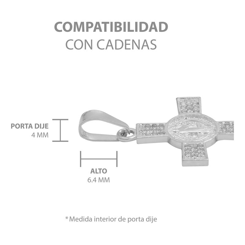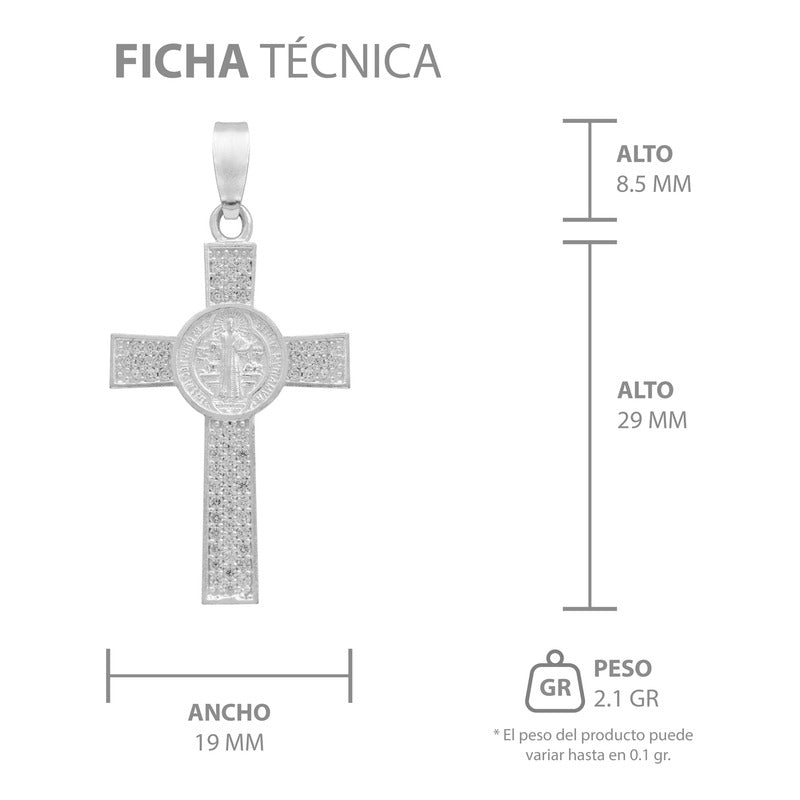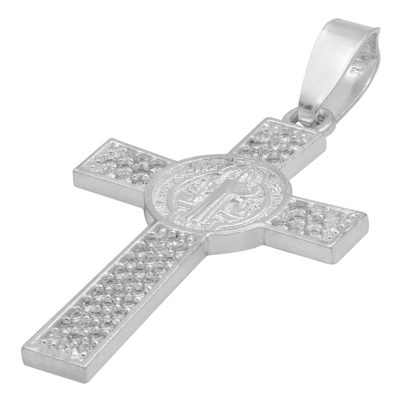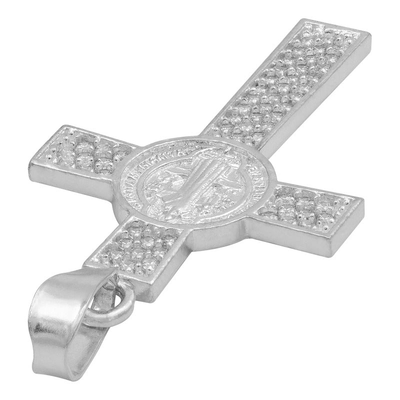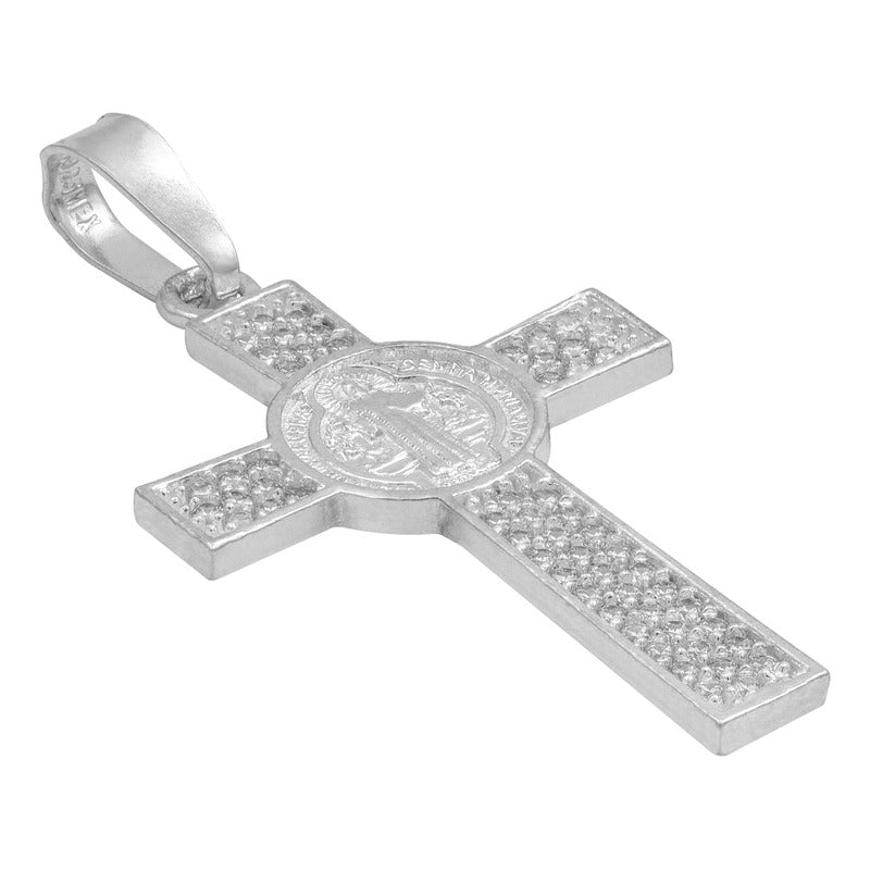Dije Cruz San Benito Zirconias Unisex Plata 925 3.9 Cm Plateado