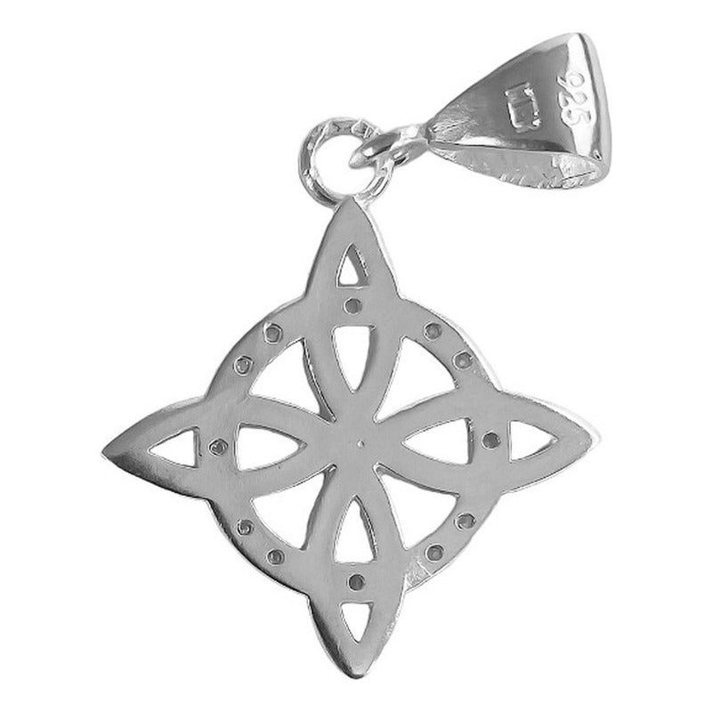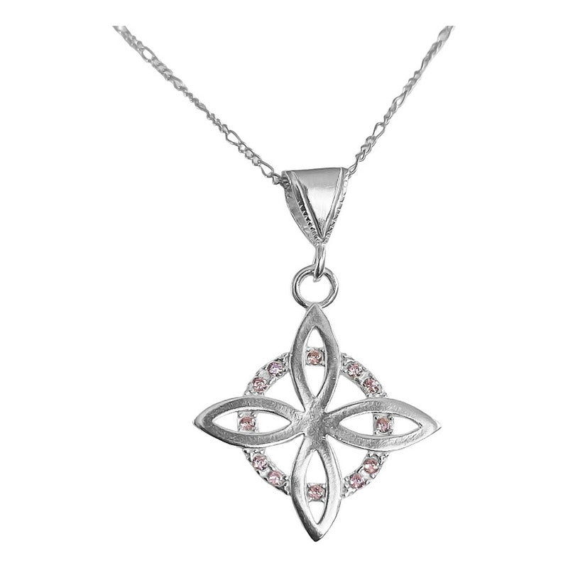 Collar Dije Nudo Bruja Plano Zirconia Flor Estrella Plata925