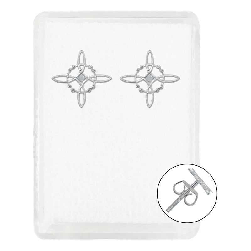 Arete Mini Broquel Nudo Bruja Liso Laser Mujer Plata Ley 925