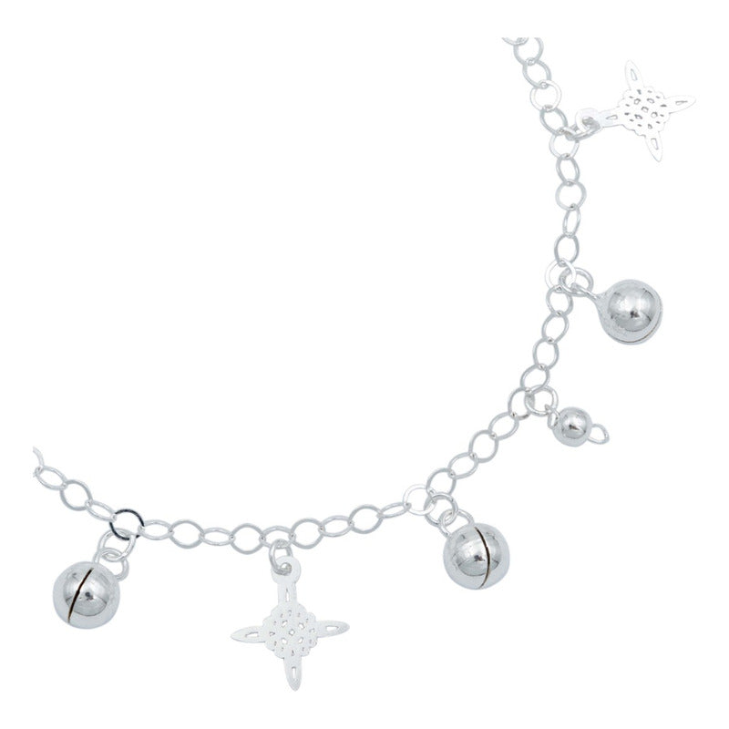 Pulsera Ajustable Nudo De Bruja Amuleto Cascabel Plata S925 Plateado 6 Cm 18 Cm