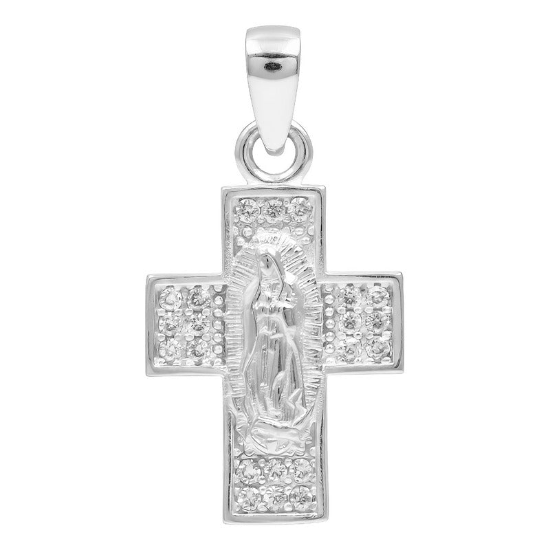 Dije Cruz Virgen Guadalupe Zirconias Mujer Plata 925 2.4 Cm Plateado