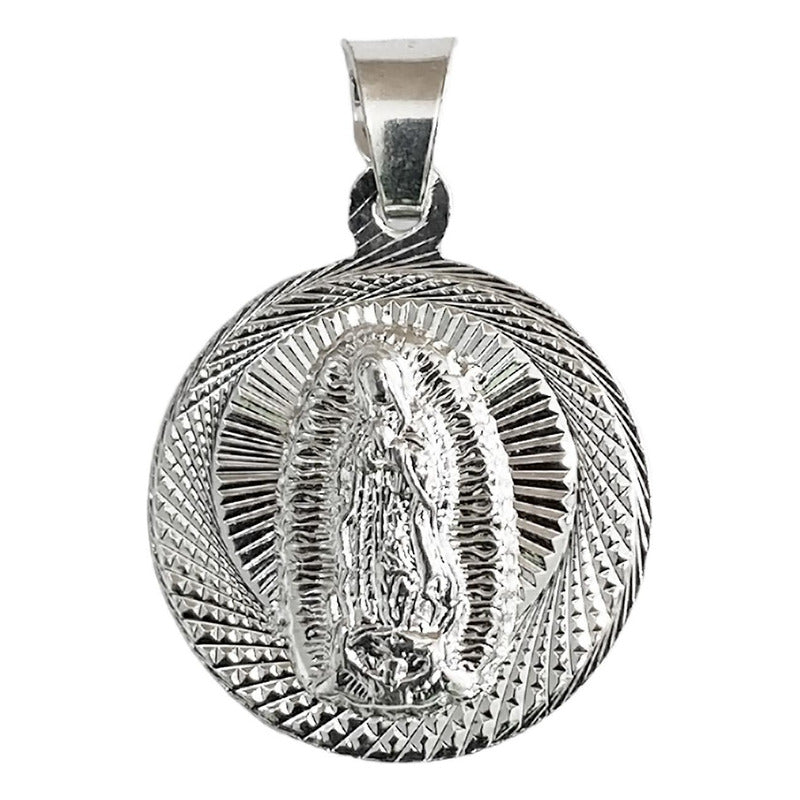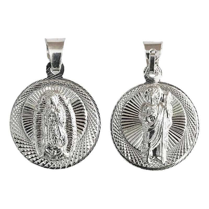 Medalla Doble Cara San Judas Virgen Guadalupe Plata Ley 925 Plateado Alto / Ancho 2.5 Cm X 1.7 Cm