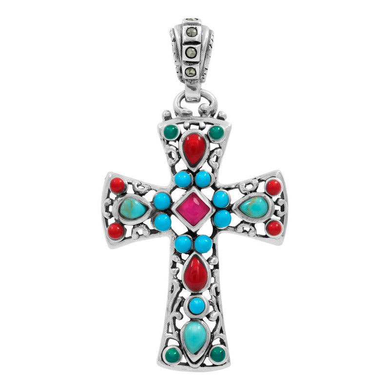 Dije Cruz Grande Plata 925 Piedra Natural Zirconia 4.3 Cm Fucsia
