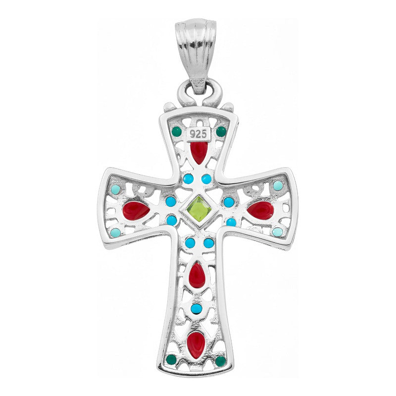 Dije Cruz Grande Plata 925 Piedra Natural Zirconia 4.3 Cm Rojo Verde