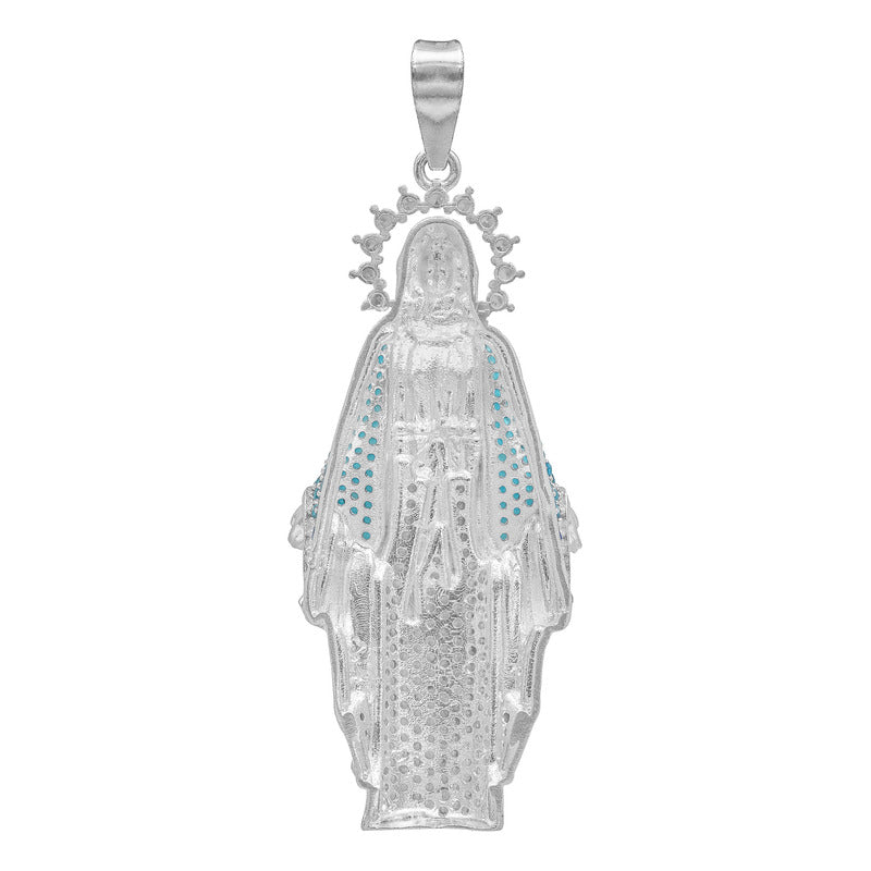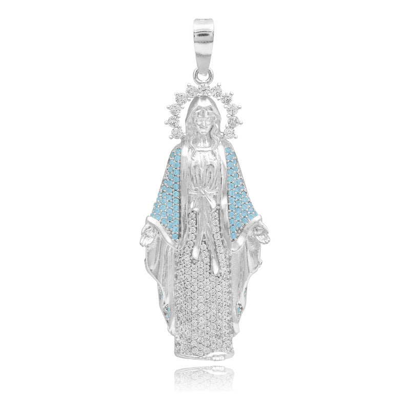 Dije Virgencita Milagrosa Zirconias Fátima Plata 925 5.8 Cm Celeste