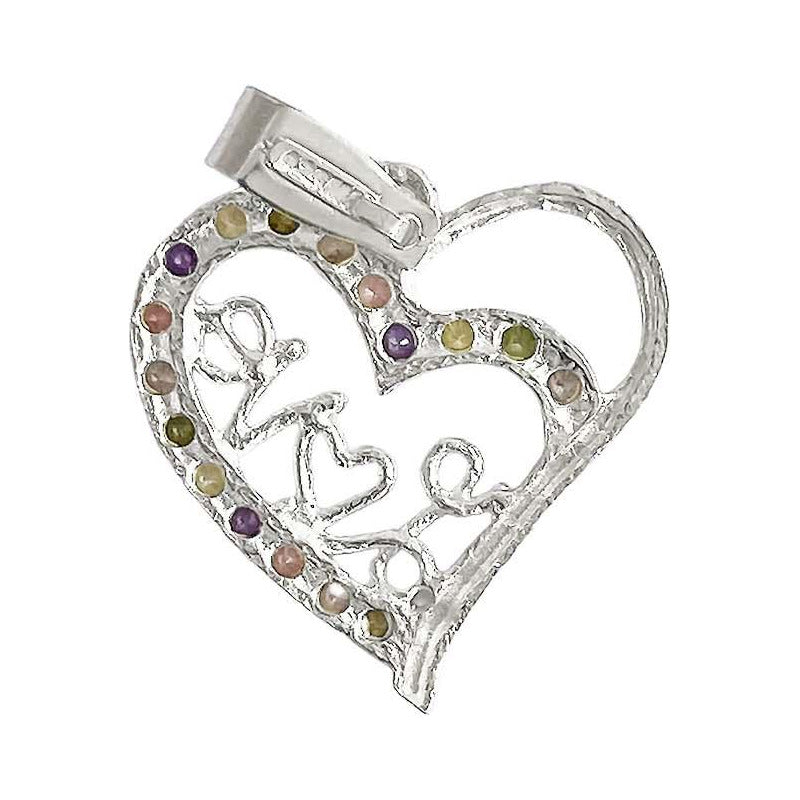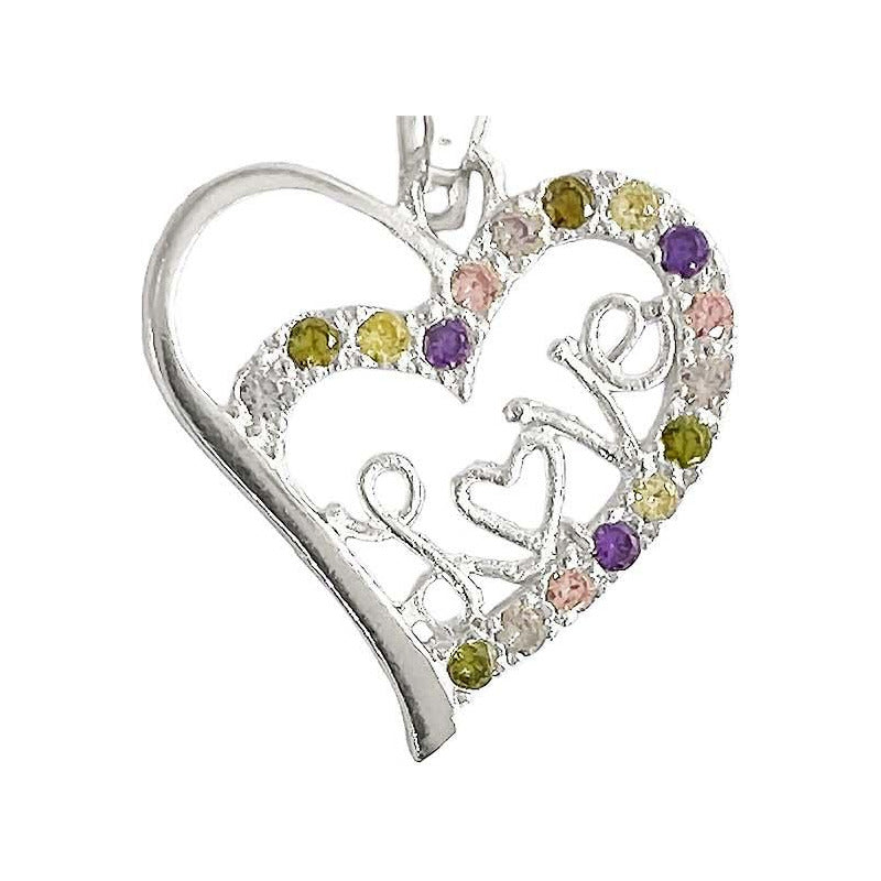 Dije Corazón Love Zirconias Amor Regalo Amistad Plata 925 Plateado Alto/ancho 3 Cm X 2.3 Cm