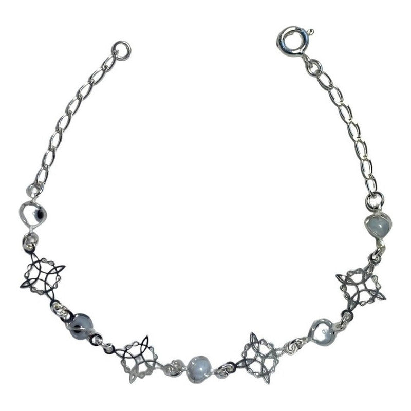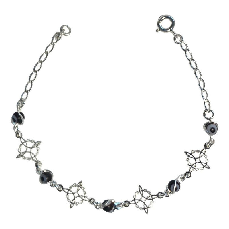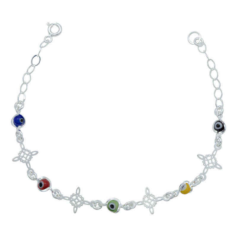 Pulsera Ajustable Nudo De Bruja Triqueta Ojo Turco Plata 925