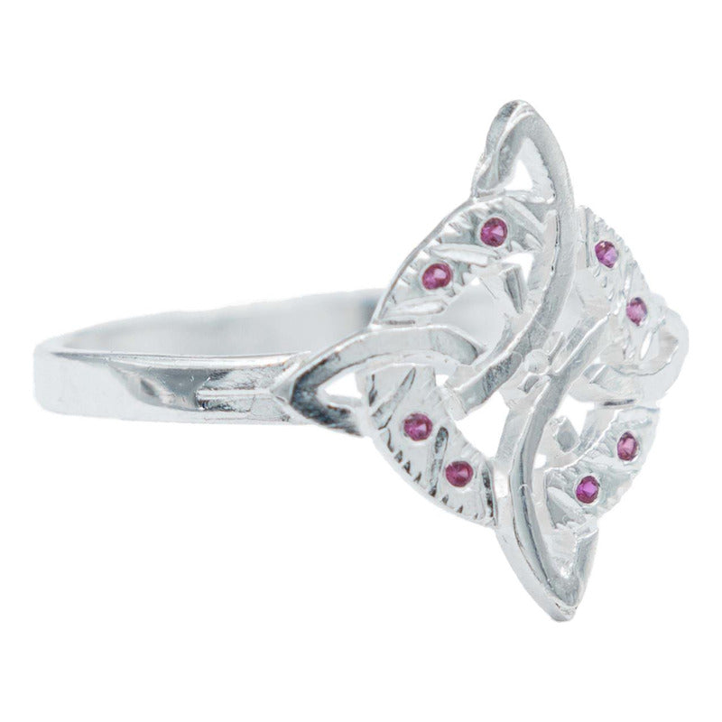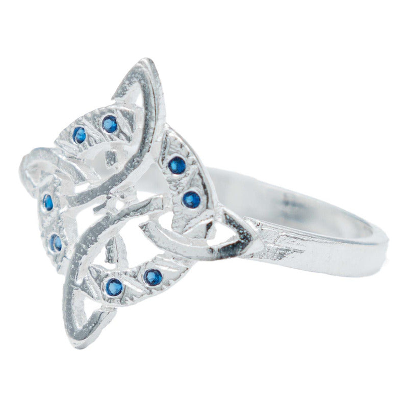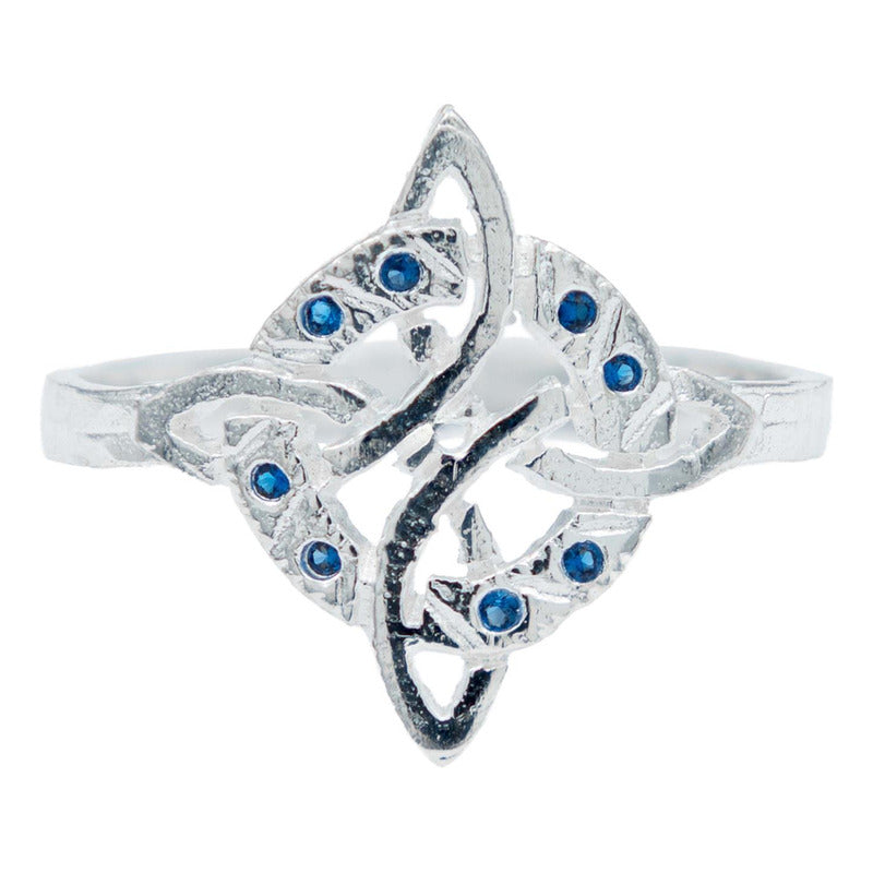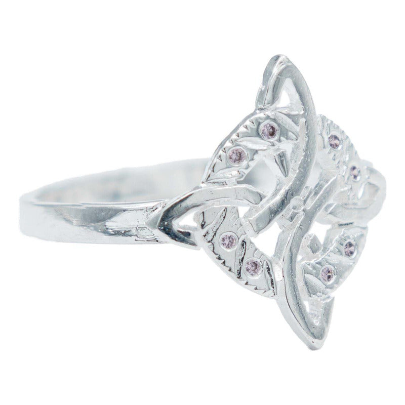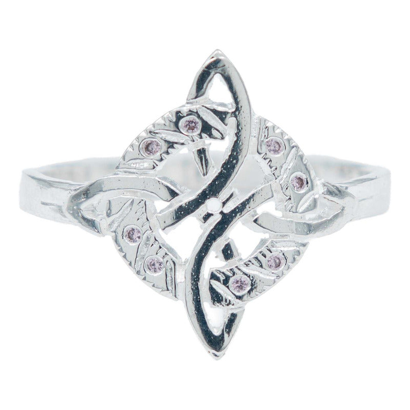 Anillo Diamantado Con Zirconias Nudo Bruja Celta Plata 925