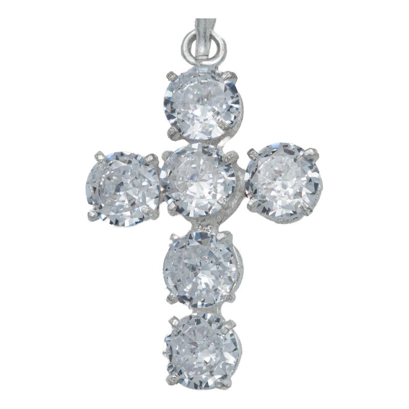 Dije Cruz Catolica De Zirconias Grande Mujer Plata 925