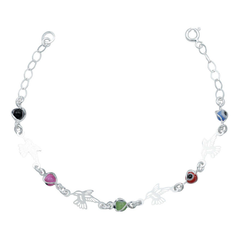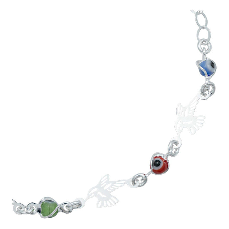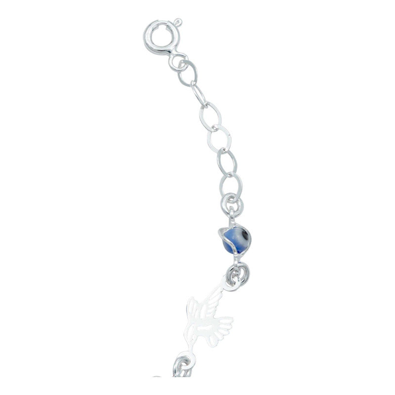 Pulsera Ajustable Colibri Ojo Turco Mujer Regalo Plata 925