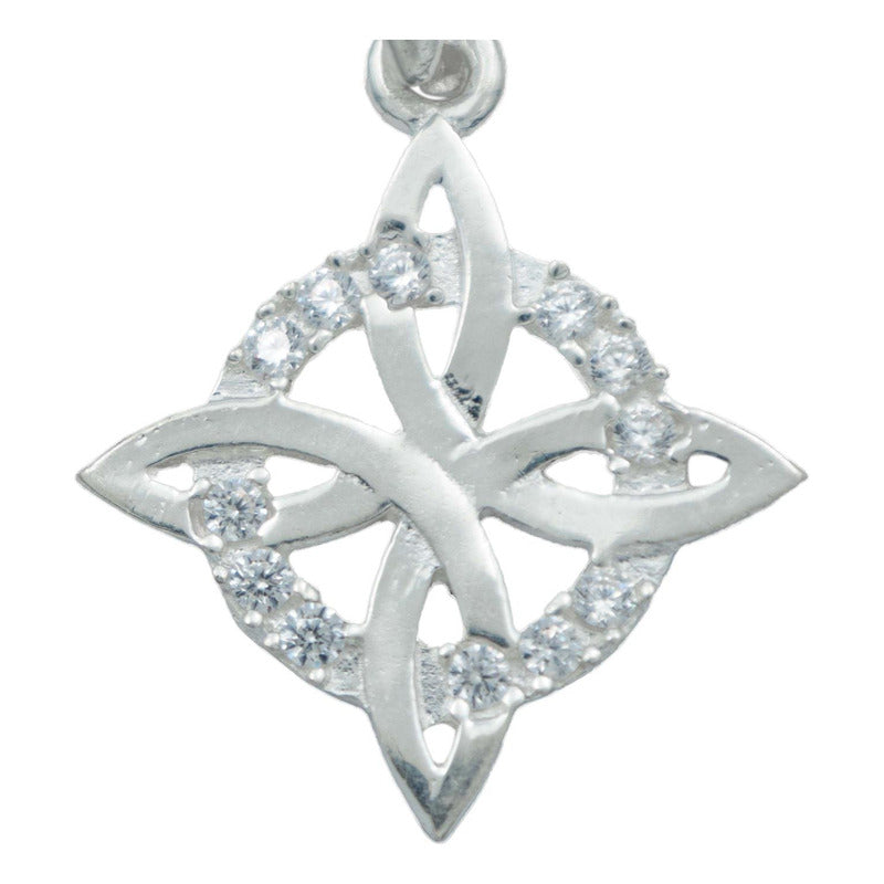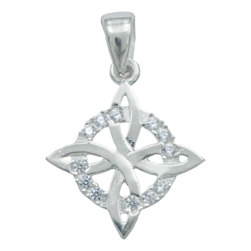 Dije Nudo Bruja Celta Chico Zirconias + Cadena Plata 925 Blanco Alto/ancho 2.8 Cm X 2 Cm