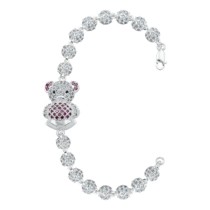 Pulsera Grande Oso Corazón Regalo Amor Zirconias Plata 925