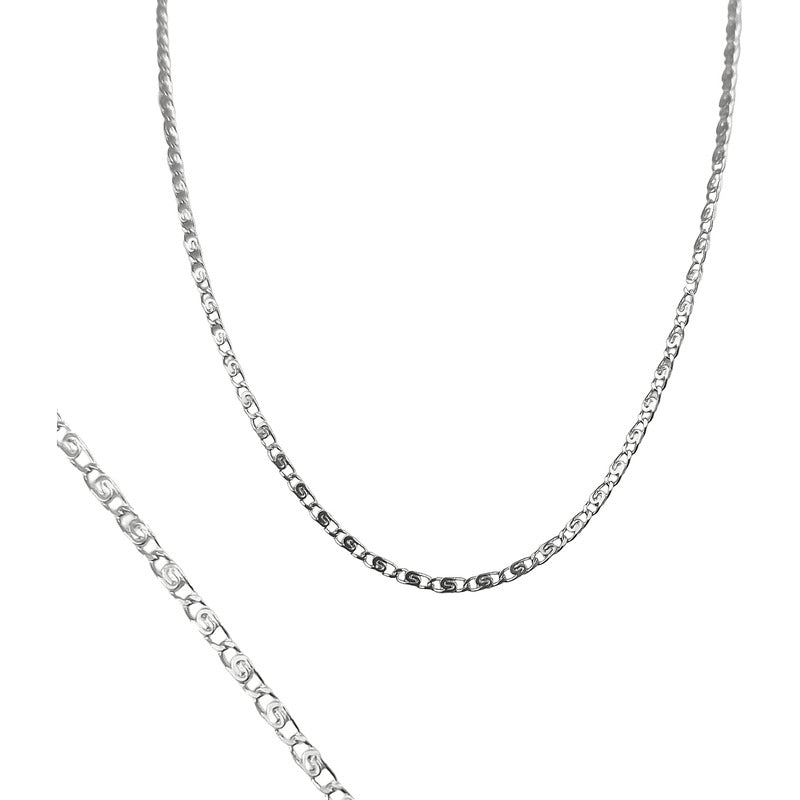 Cadena De Plata Ley .925 Marinera Grabada 55 Cm X 1 Mm Plateado