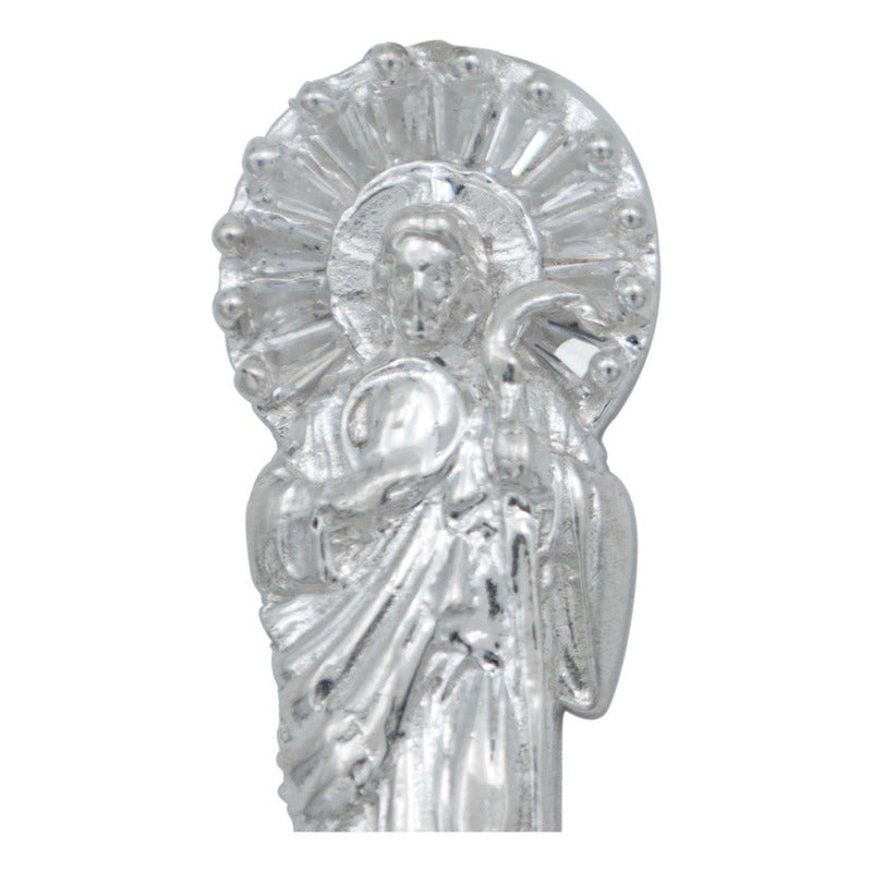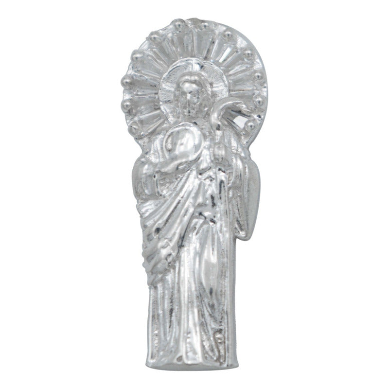 Dije Chico San Judas Liso Zirconia Plata Ley 925 4.5 Cm Blanco