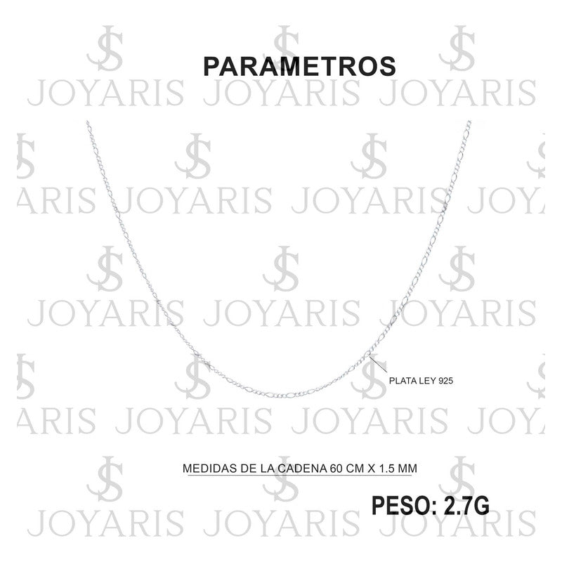 Cadena Tejido Fígaro 3x1 Plata Solida 925 60cm X 0.15cm Plateado