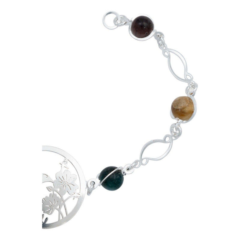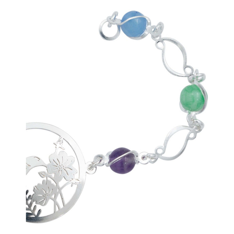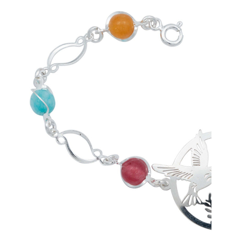 Pulsera Colibri Flores Piedra Natural Cuarzo Plata 925