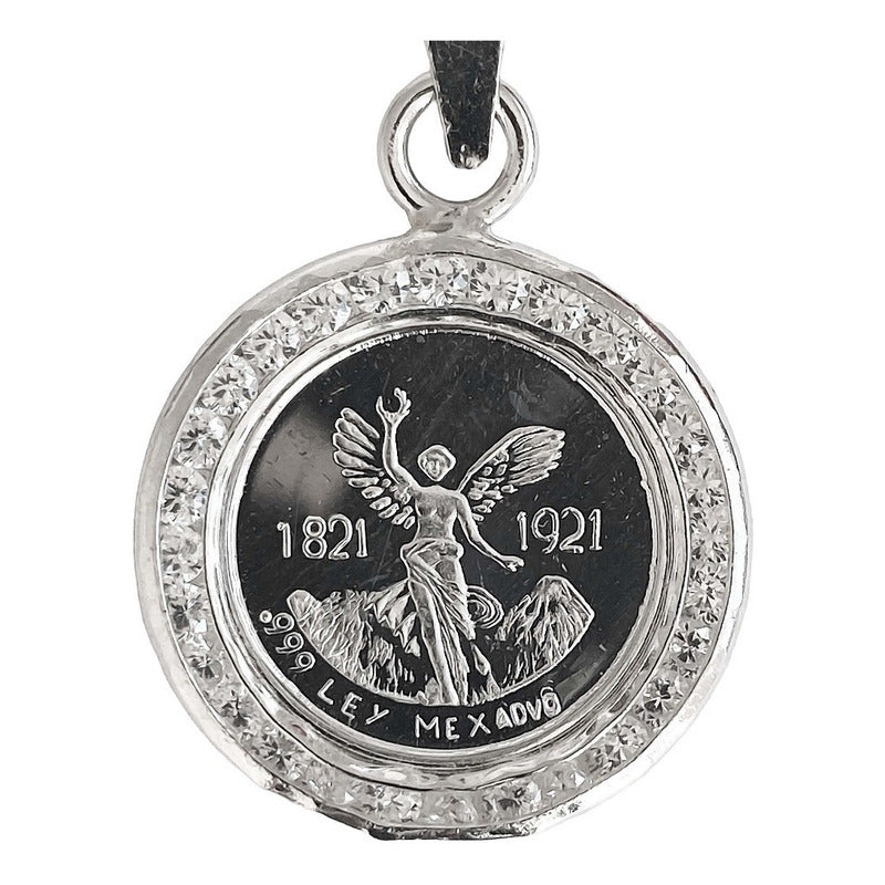 Dije Medalla Centenario México Zirconias Plata Pura Ley .999