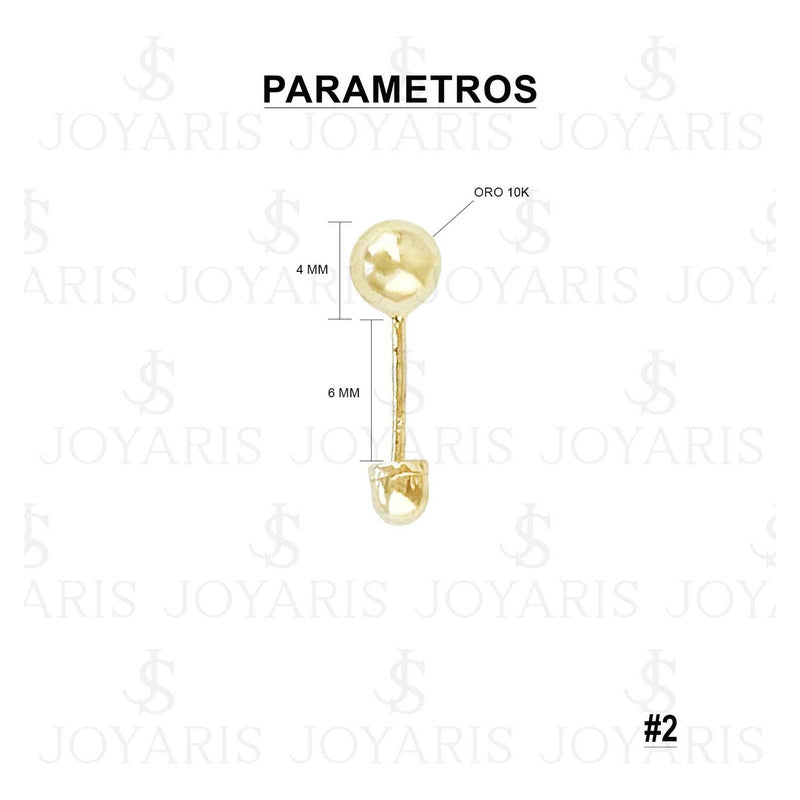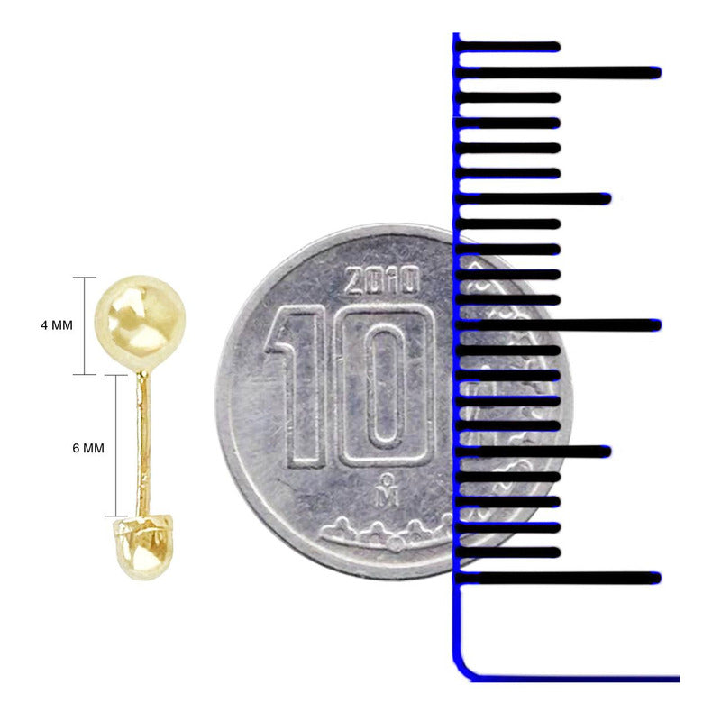 Aretes Broquel Dormilona Bola Mujer Regalo #2 4 Mm Oro 10k