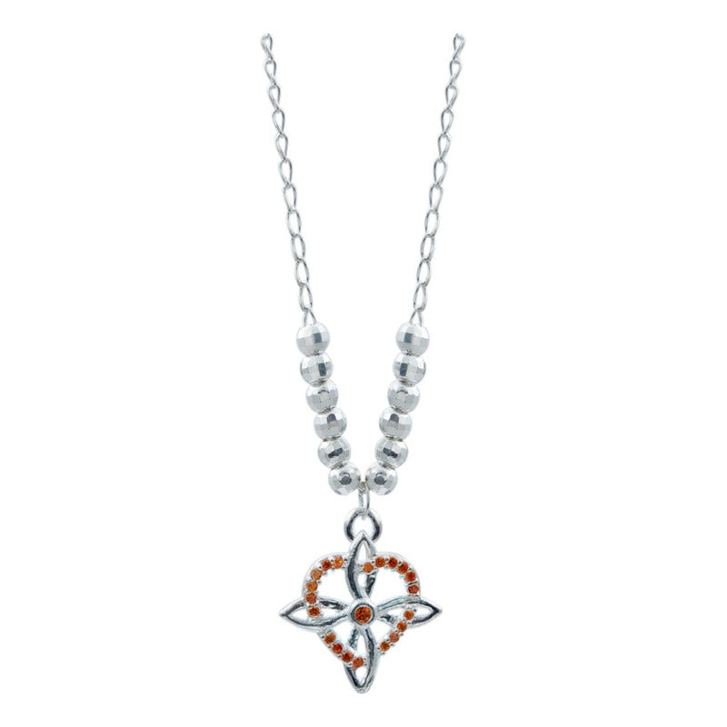 Collar Mini Nudo De Bruja Zirconia Corazón Bolita Plata 925 Naranja