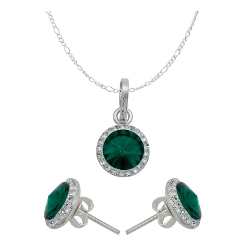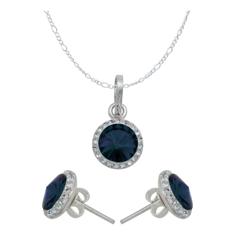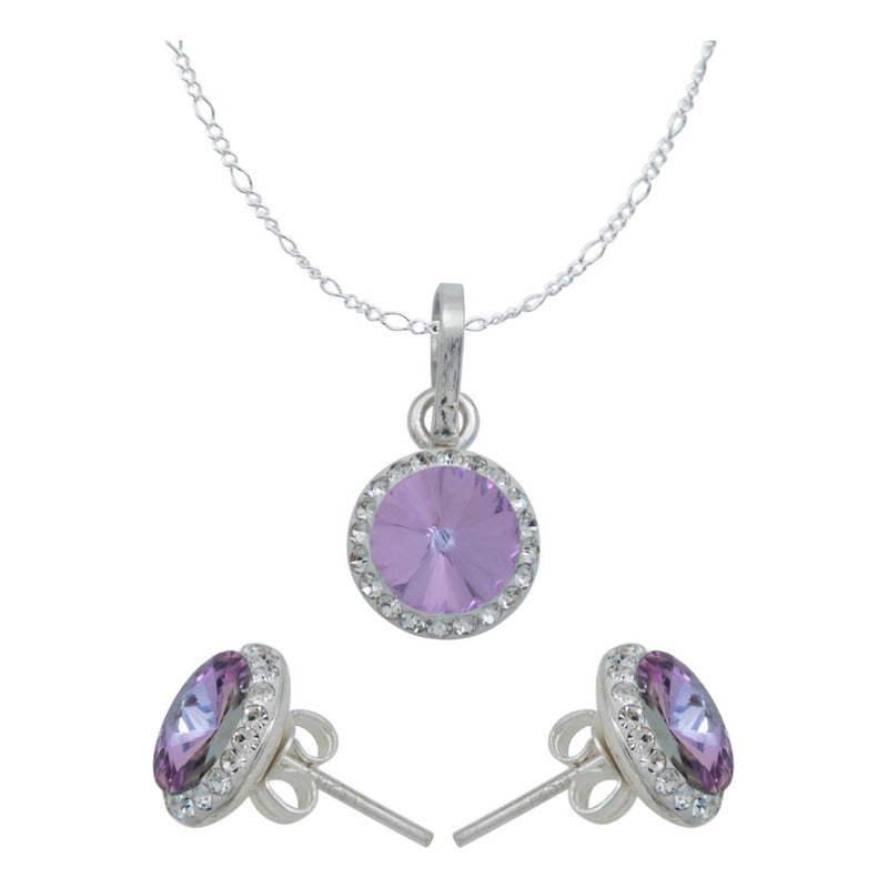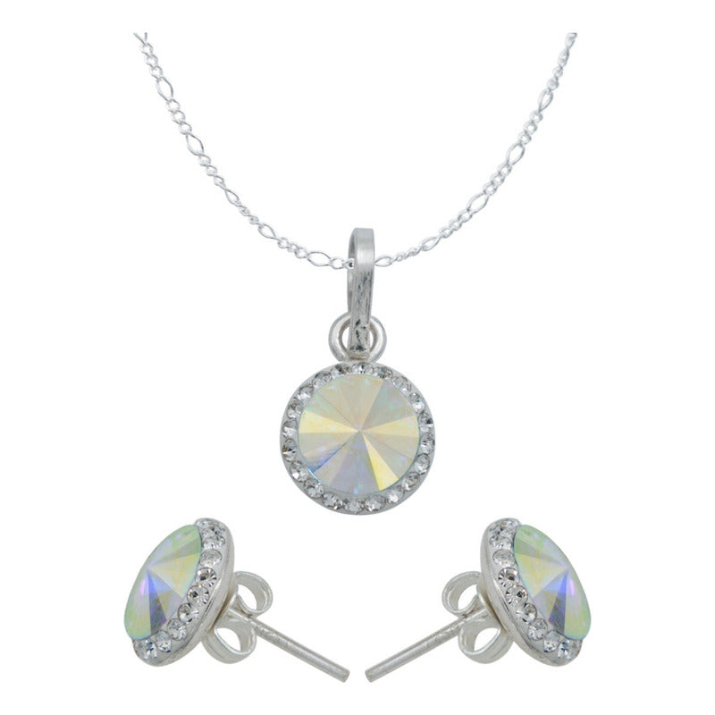 Juego Grande Cristal Dije Arete Cadena Mujer Regalo Plata925