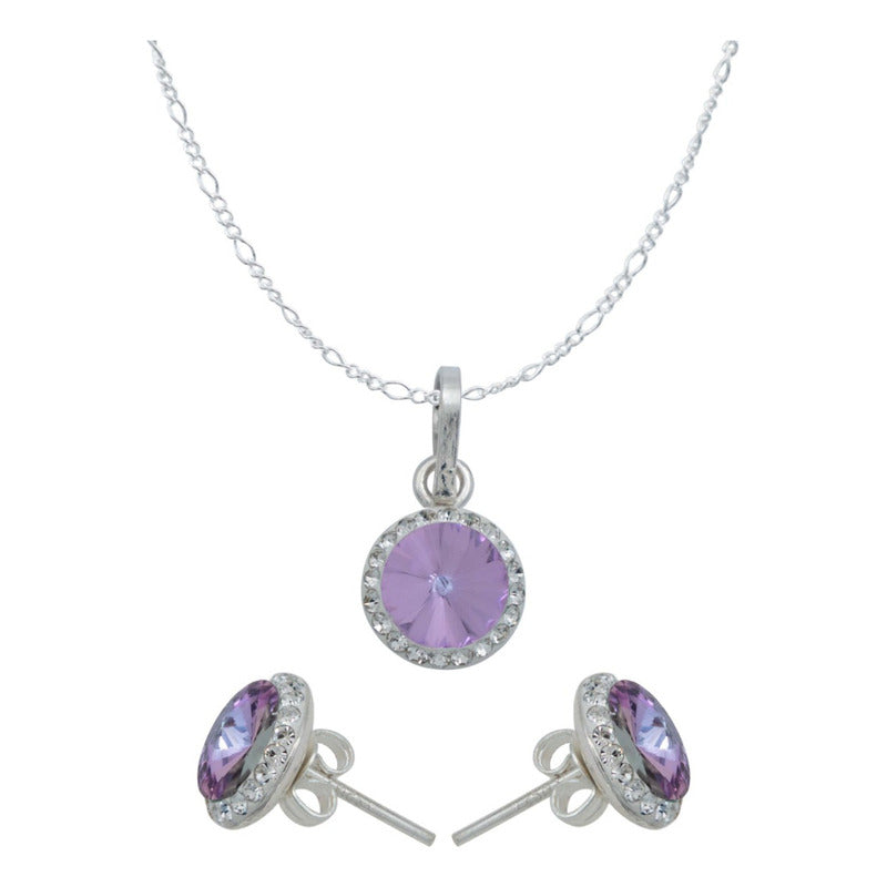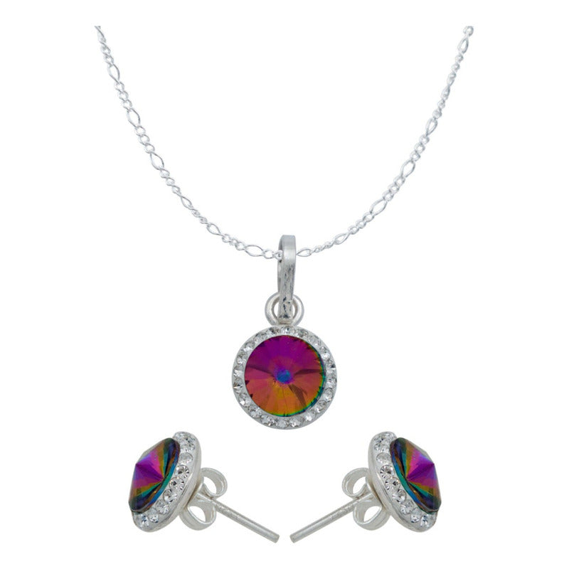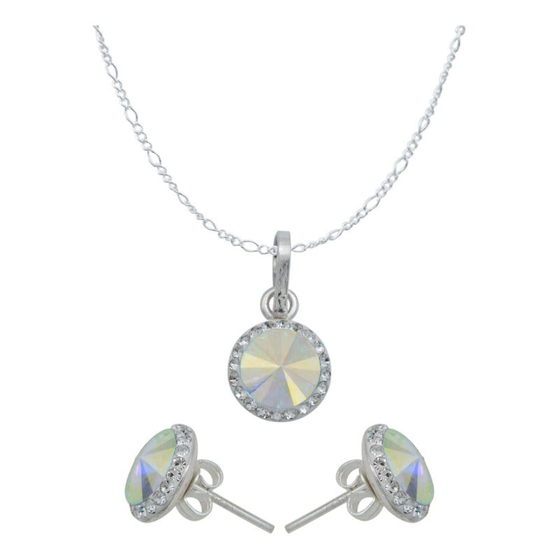 Juego De Cristal Dije Aretes Cadena Mujer Regalo Plata 925