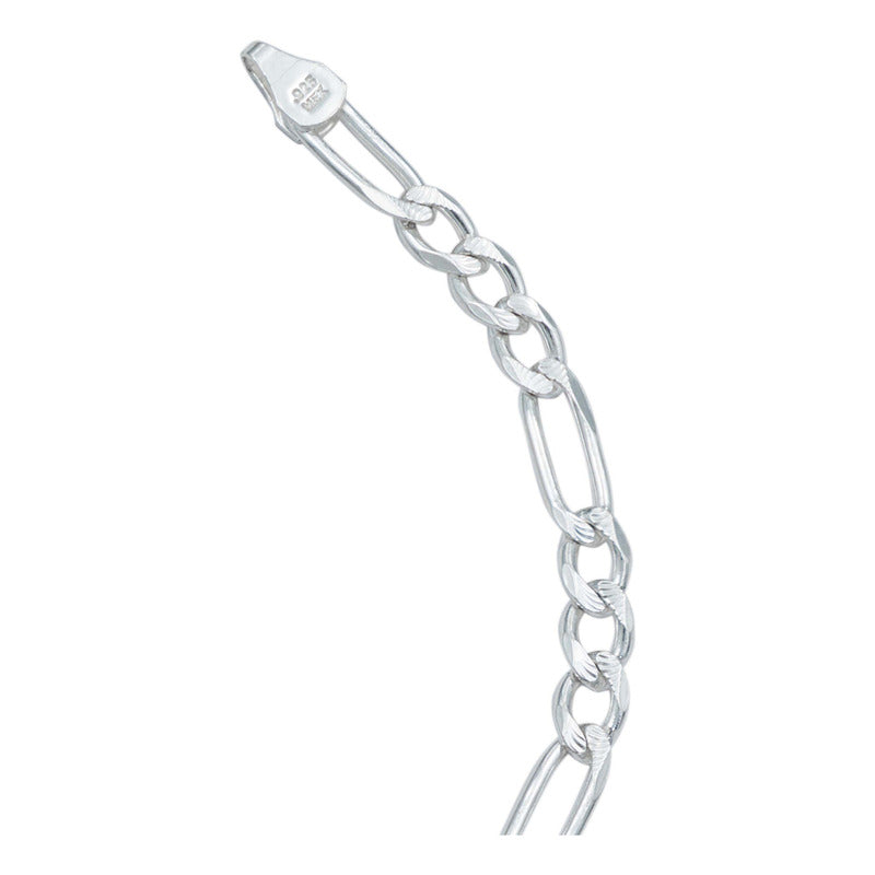 Esclava Pulsera Fígaro 3x1 Hombre Diamantada Plata .925 5 Mm
