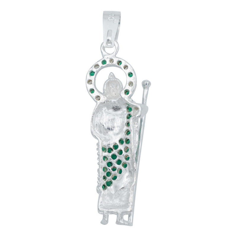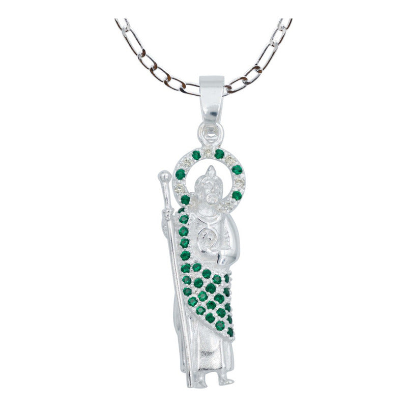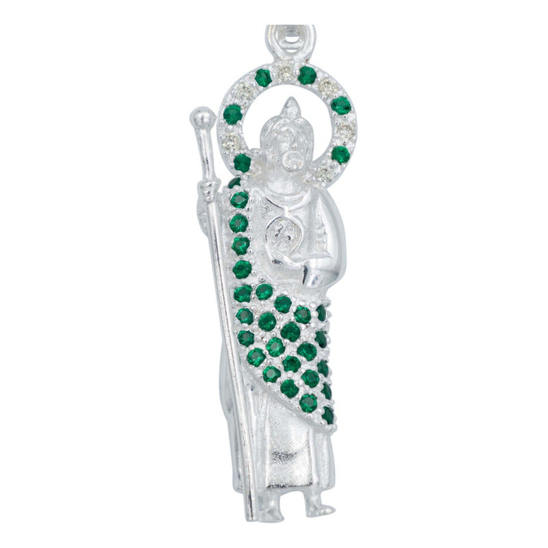 Dije San Judas Zirconias + Cadena Figaro 50 Cm Plata 925 Verde