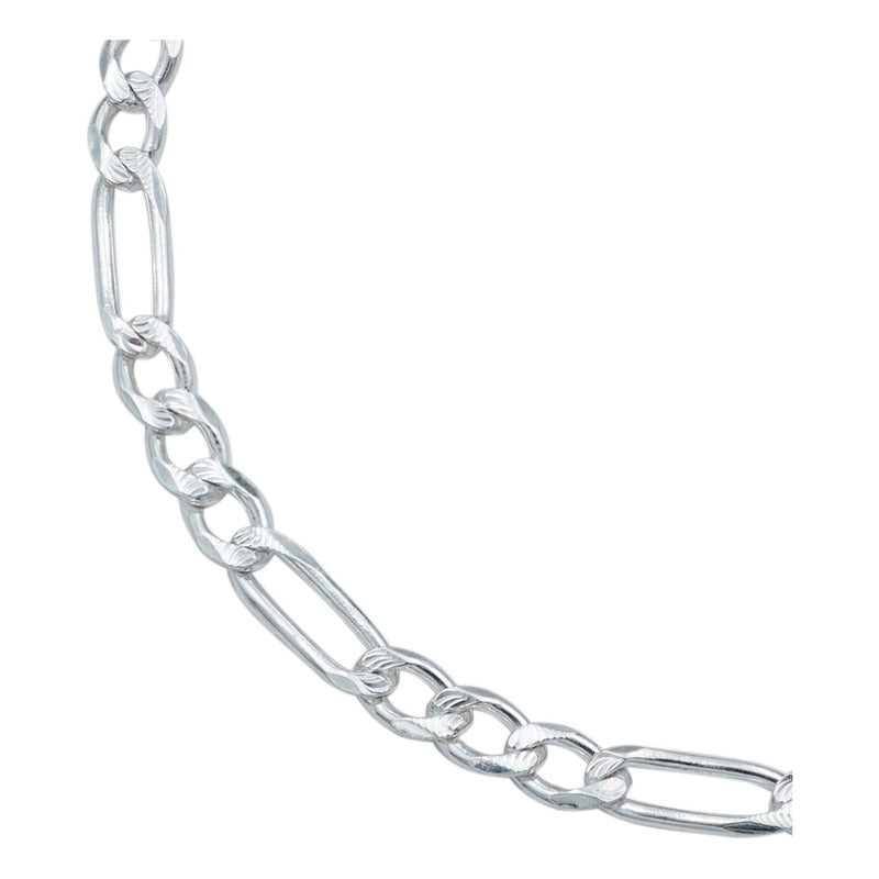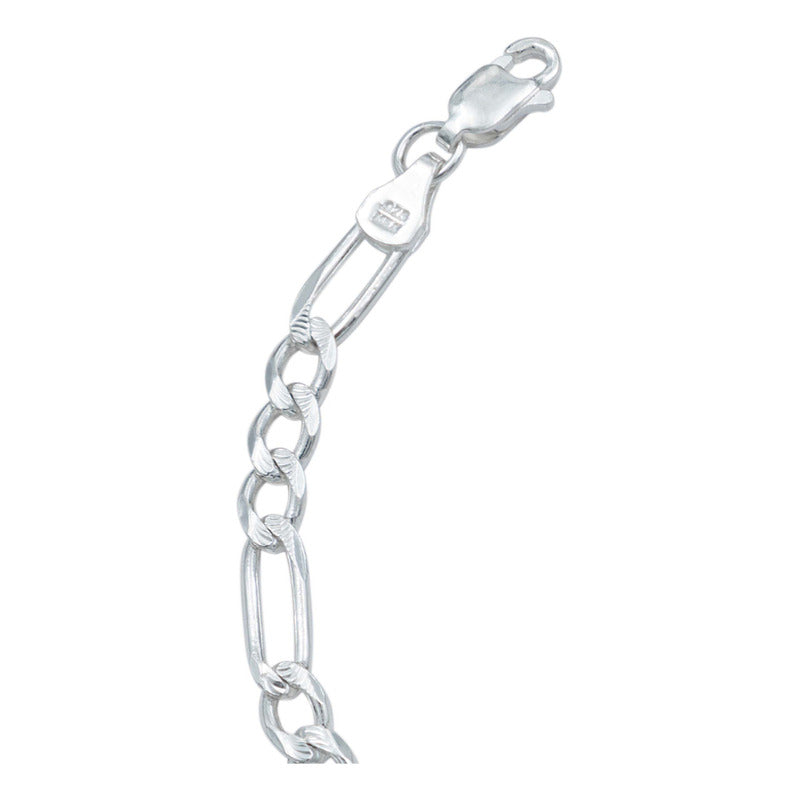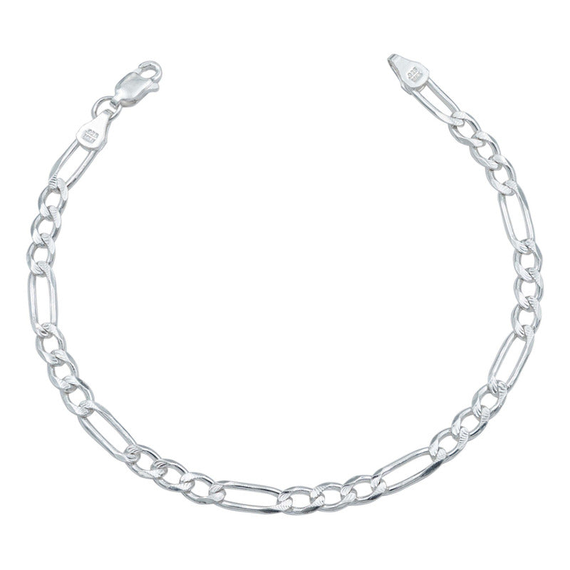 Esclava Pulsera Fígaro 3x1 Diamantada Unisex Plata S925 4 Mm
